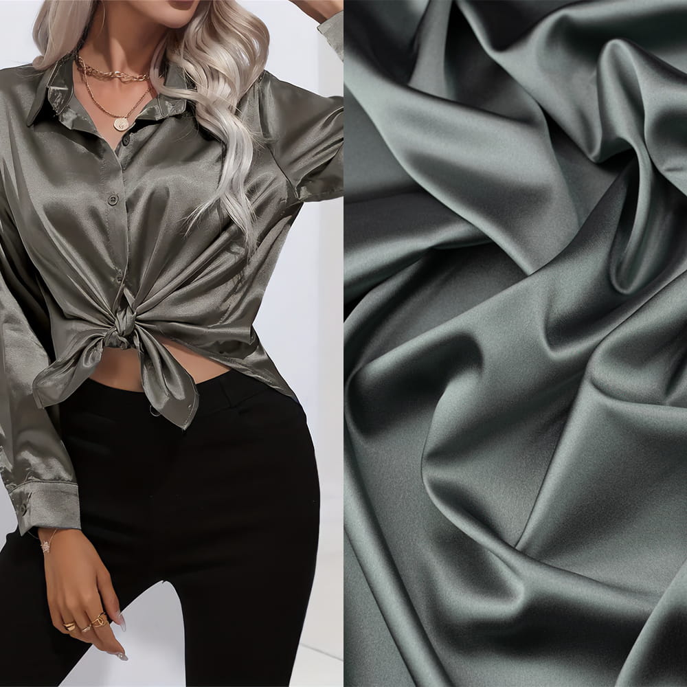 Satyna z lycrą ciemnoszara – głęboka elegancja i ponadczasowy styl