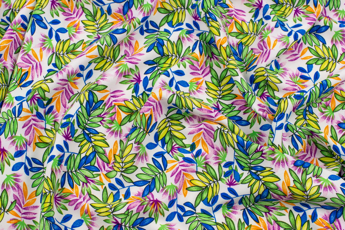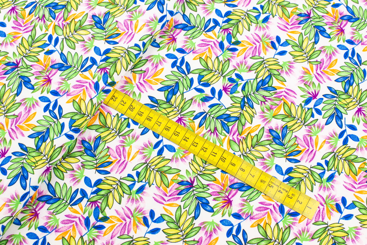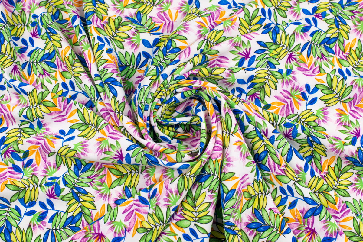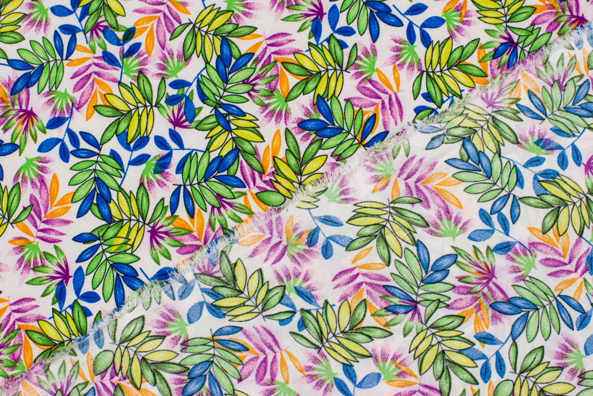 Tkanina Silki Wzór Liście kolor zielony i różowy