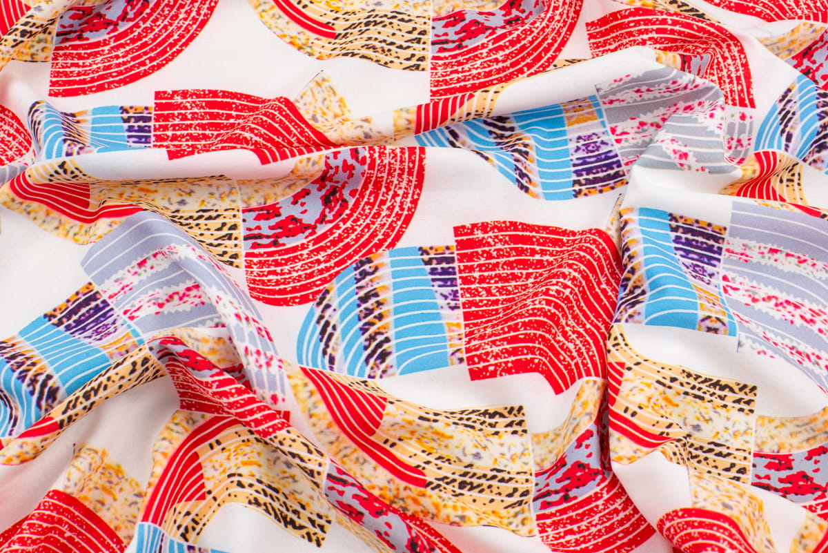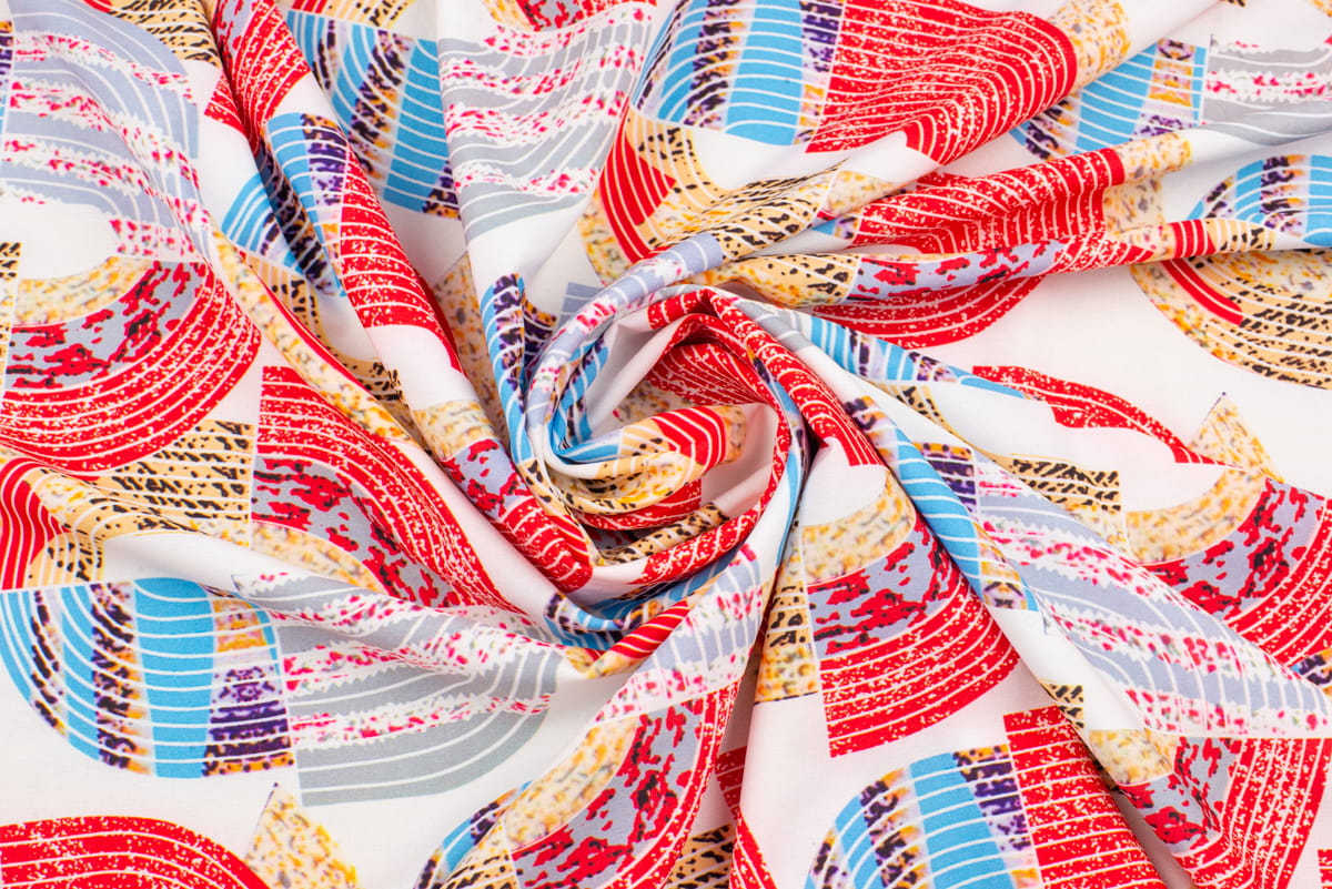 Tkanina Silki Wzór kolorowy Geometryczny kolor ecru