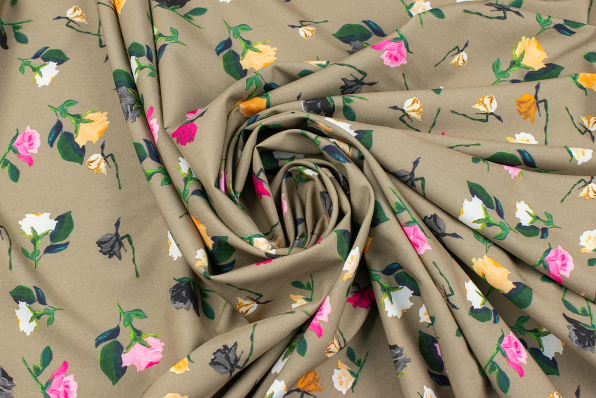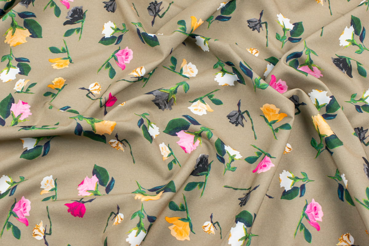 Tkanina Silki Wzór kwiaty kolor karmelowy