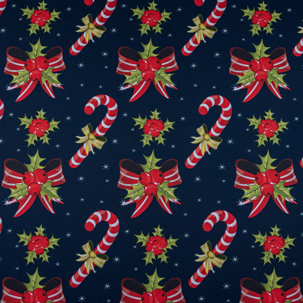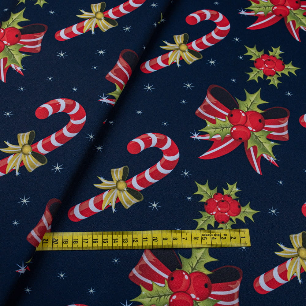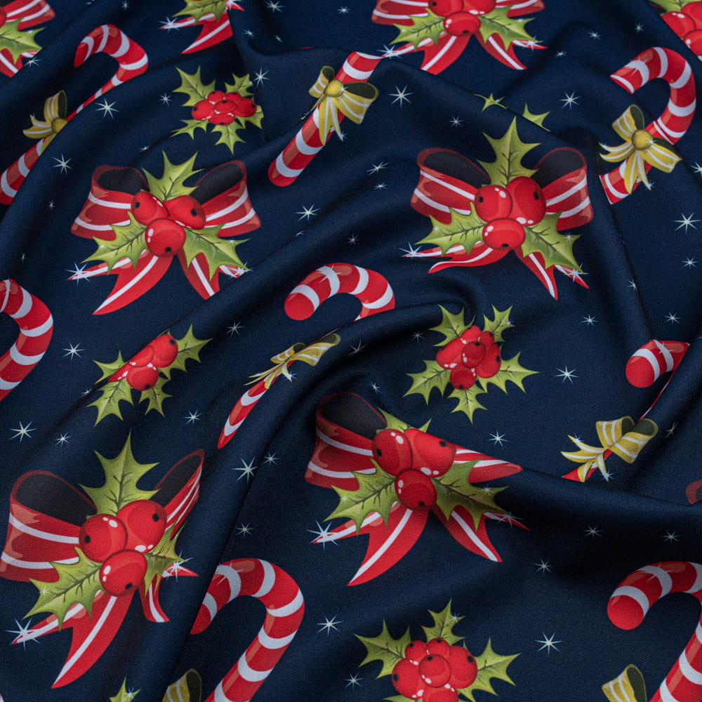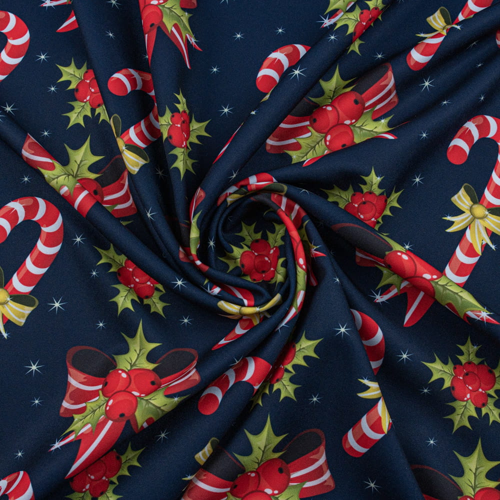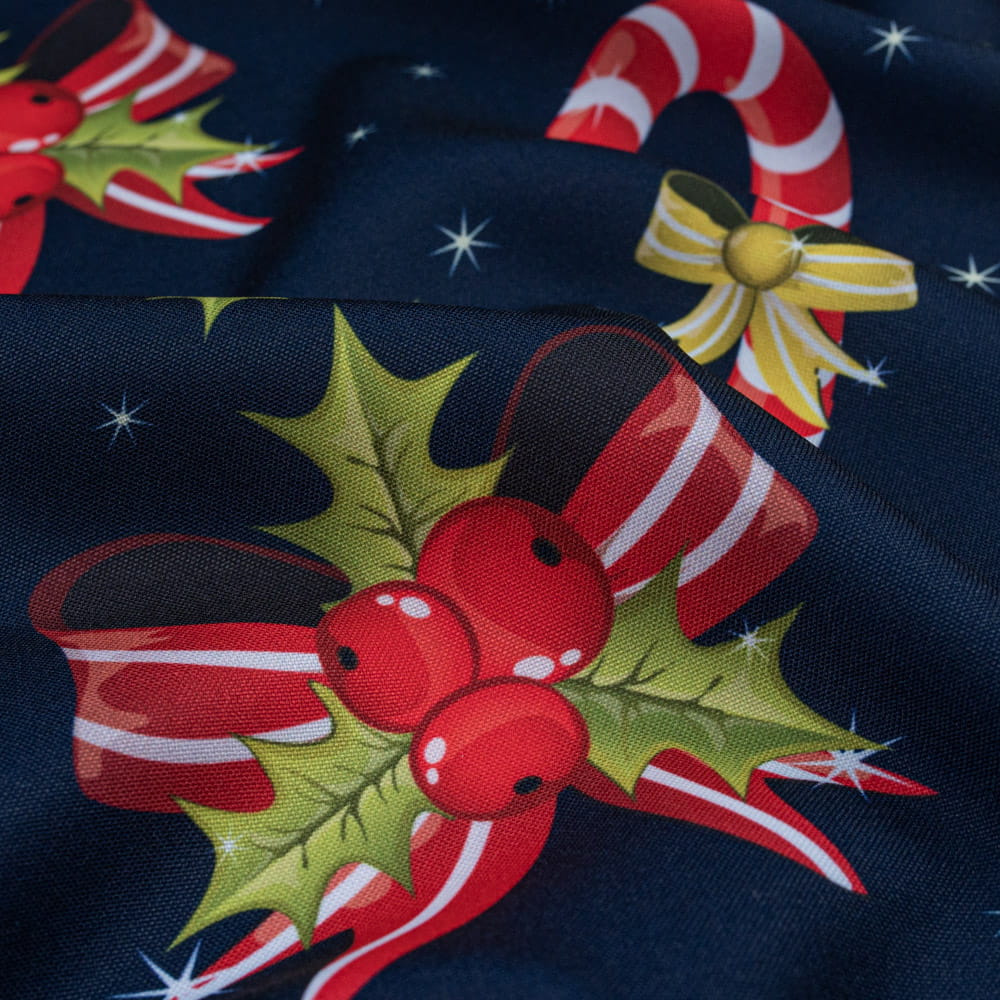 Tkanina Stretch panama wzór świąteczny kolor granatowy