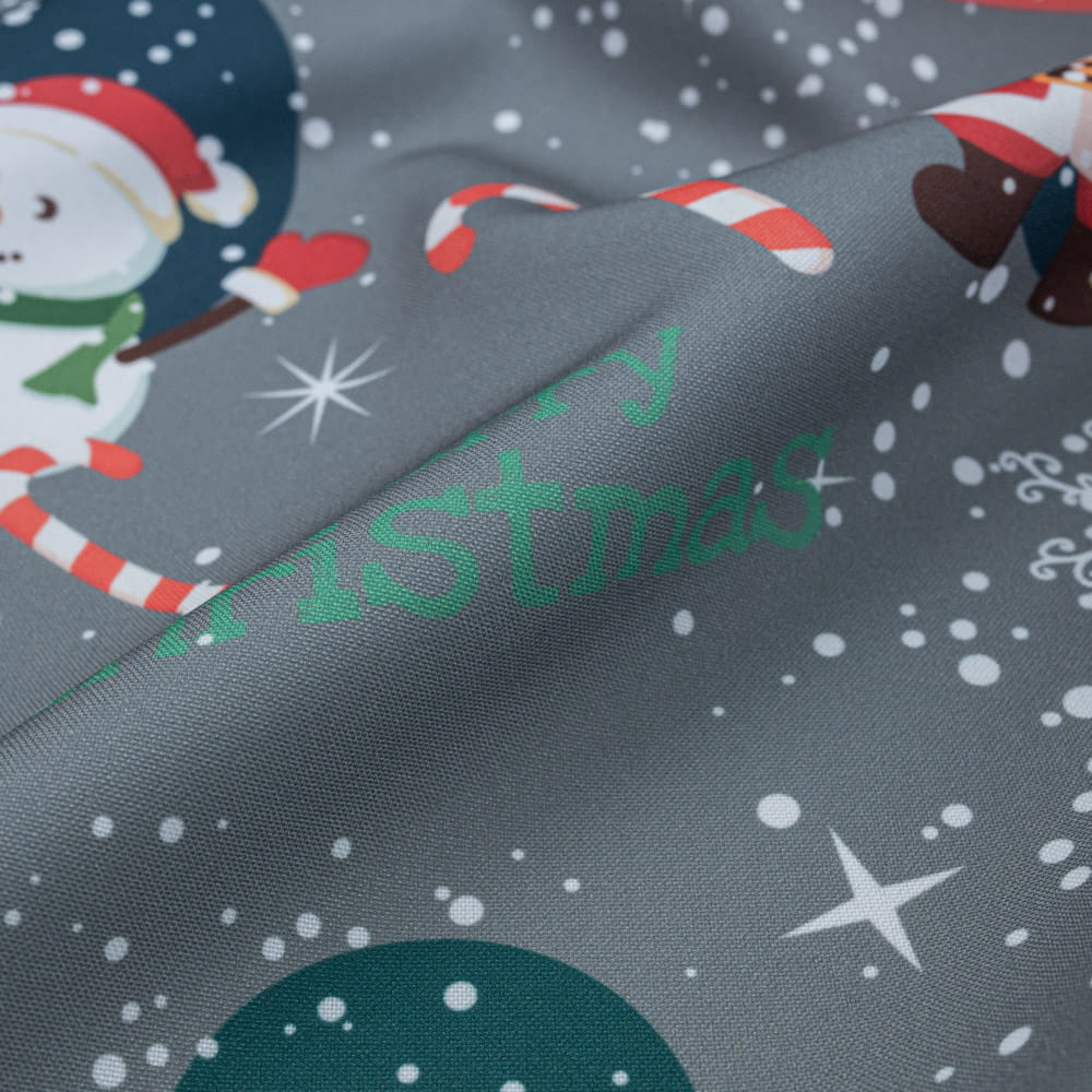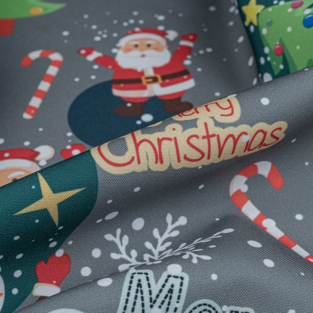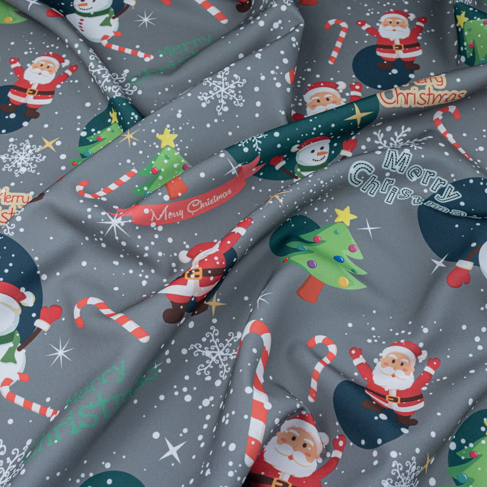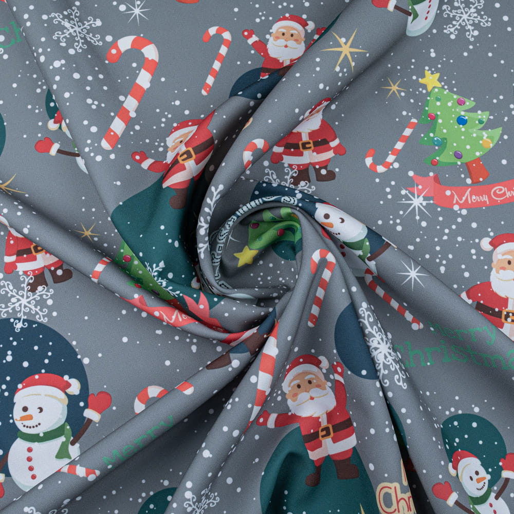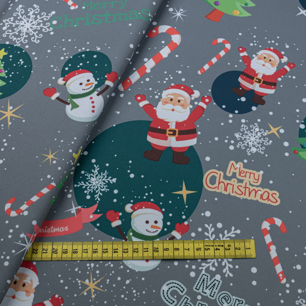 Tkanina Stretch panama wzór świąteczny mikołaj kolor szary