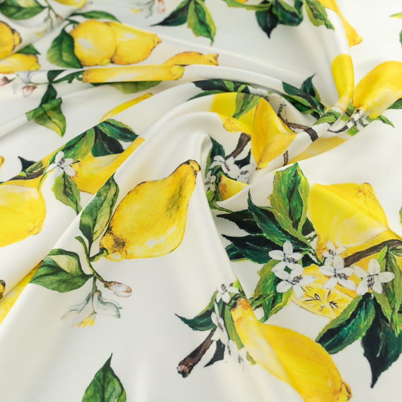 Tkanina Szyfon Jedwabny – Wzór Cytryny
