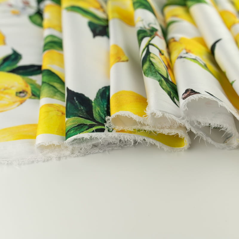 Nie zwlekaj – dodaj tkaninę szyfonową jedwabną z motywem cytryn do swojego koszyka i zrealizuj swoje kreatywne pomysły z materiałem najwyższej jakości. Produkt sprzedawany na metry bieżące co 0,5 mb – wysyłany w jednym kawałku.