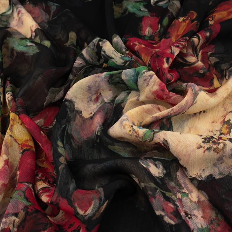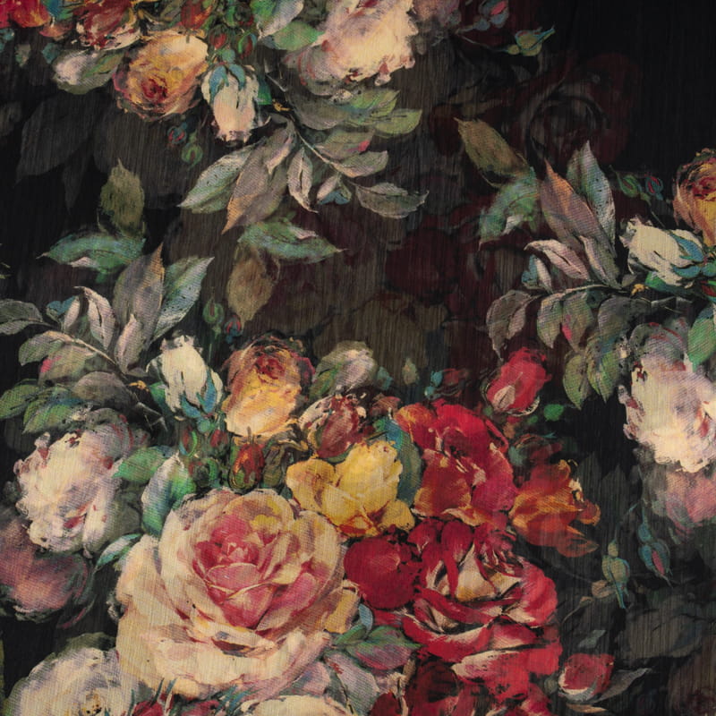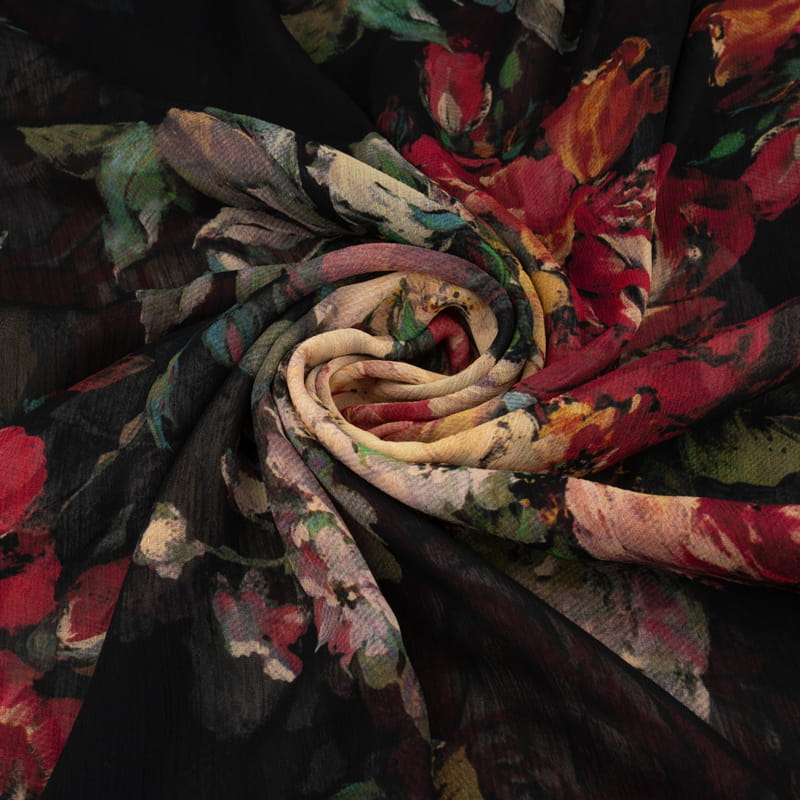 Tkanina Szyfon w kwiaty kolor czarny