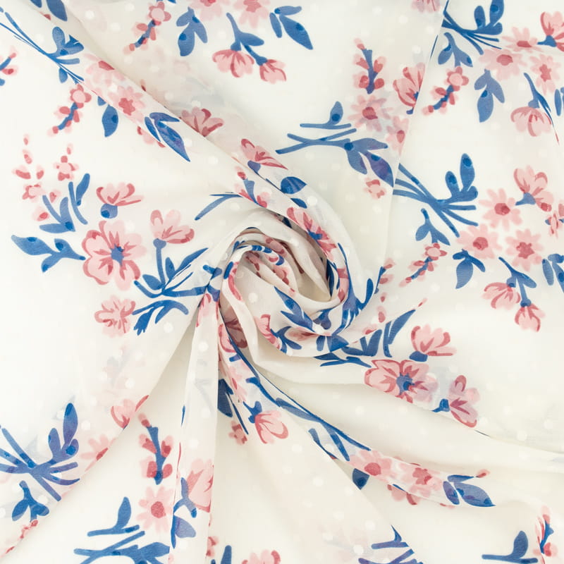 Delikatna tkanina szyfonowa, idealna na lekkie i zwiewne tuniki, bluzki lub wielowarstwowe sukienki. Charakteryzuje się niską gramaturą, układa się miękko i lejąco. Świetnie komponuje się z satynami, żorżetami i koronkami. Tkaniny tego typu często są także wykorzystywane w postaci szala jako dodatek do wizytowych kreacji. Doskonały na koszule, bluzki, sukienki warstwowe, spódnice, apaszki.