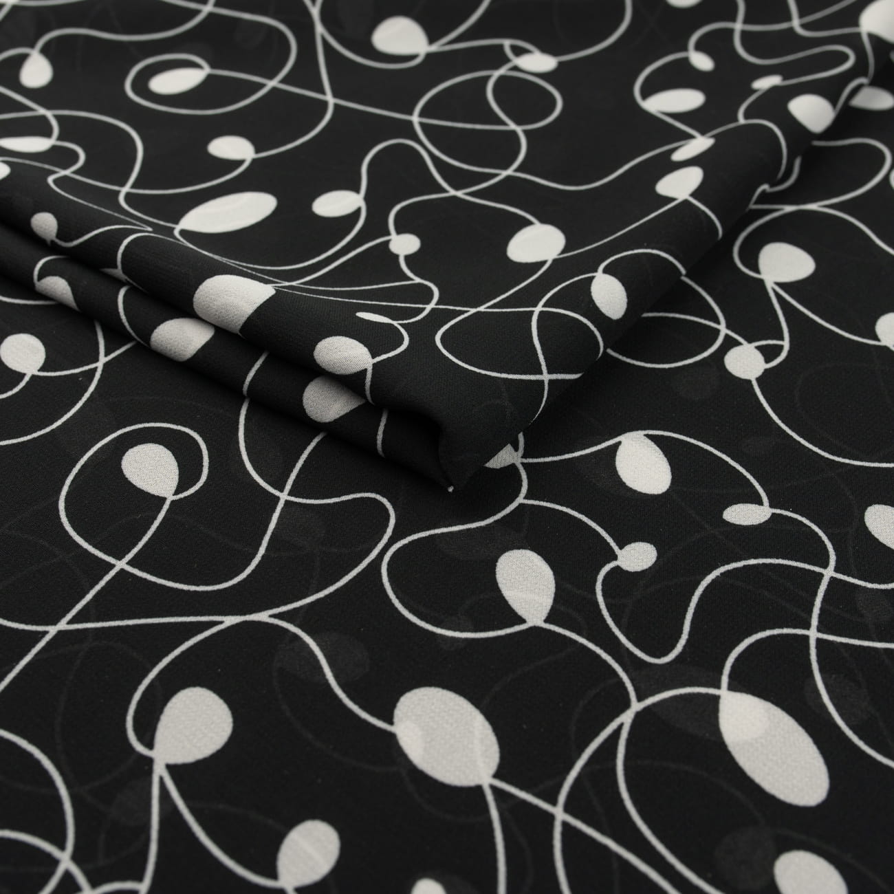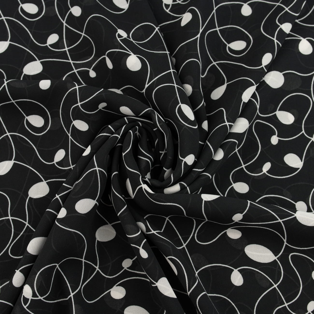 Tkanina Szyfon wzór biały łańcuszek czarne tło