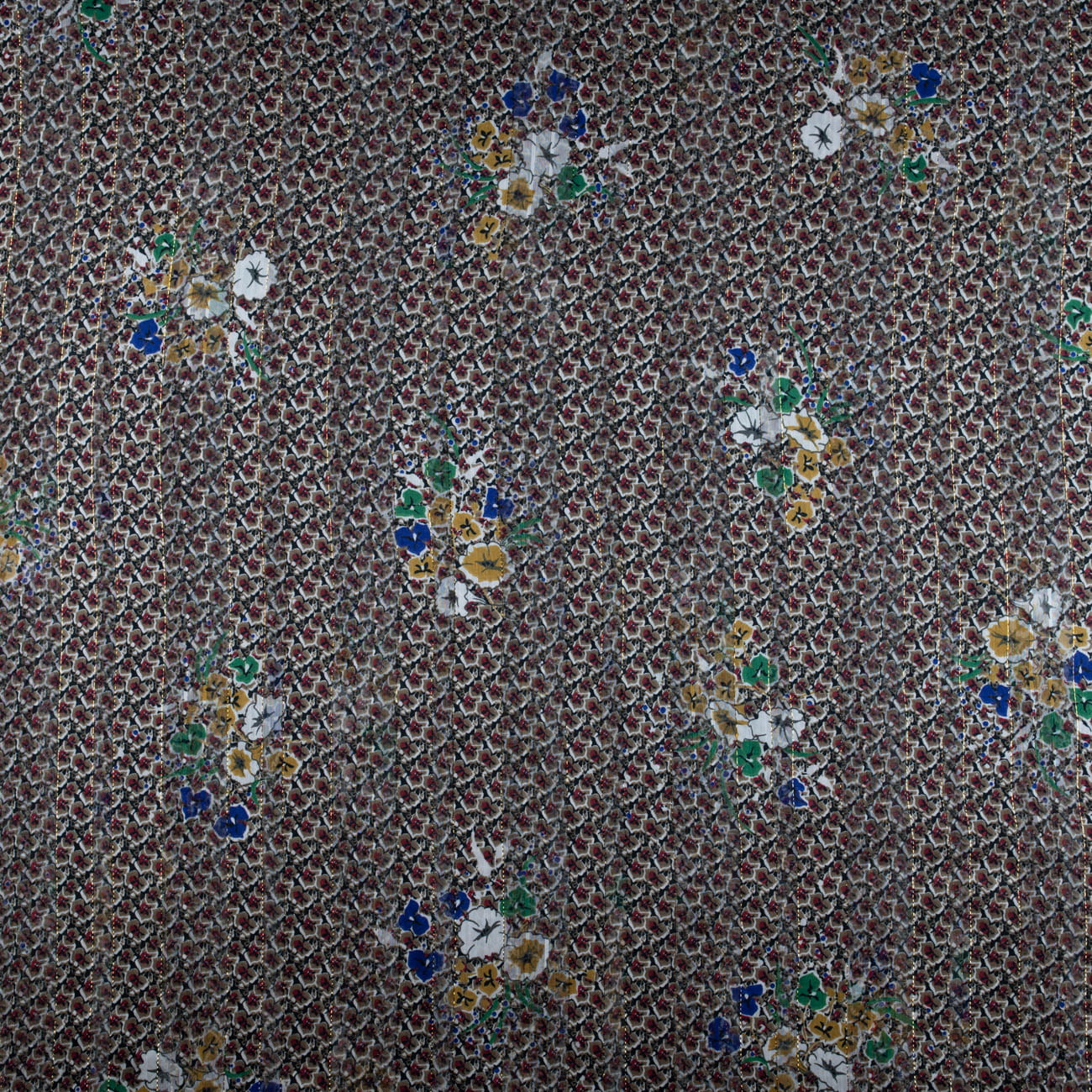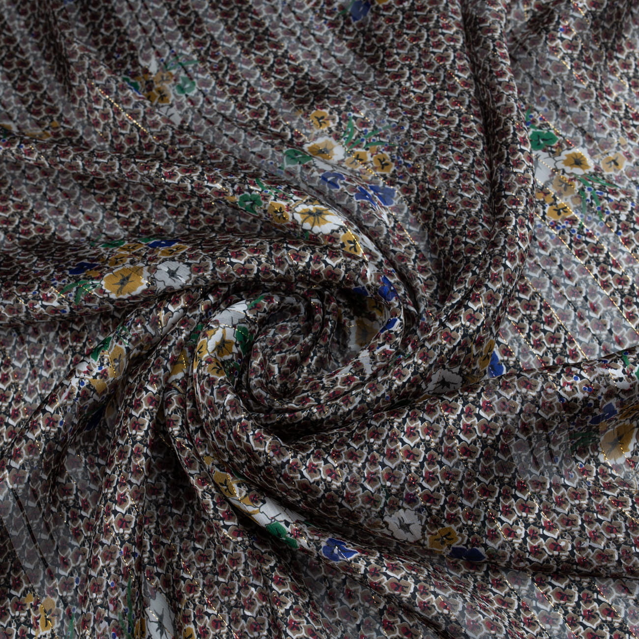 Tkanina Szyfon wzór kwiatki kolor granatowy