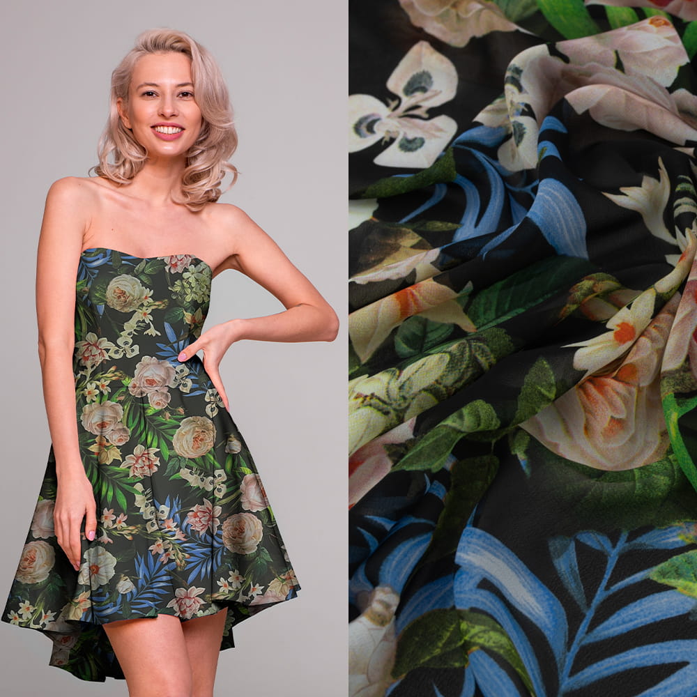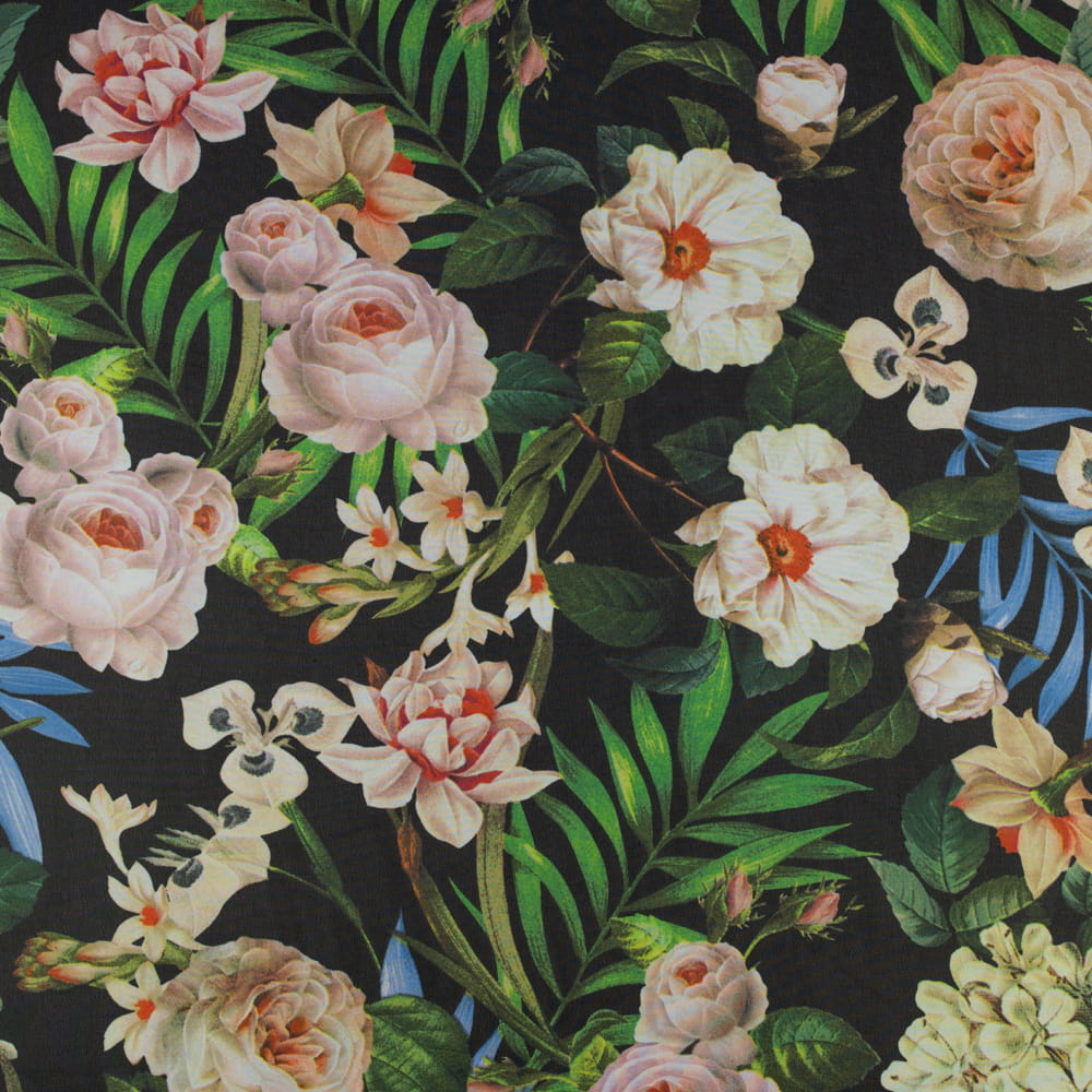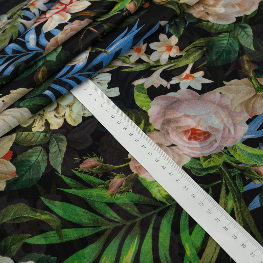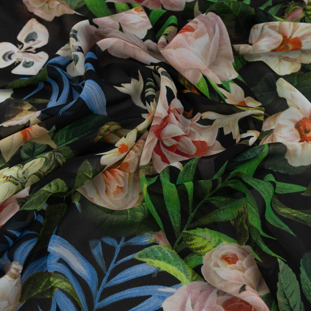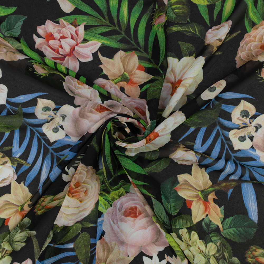 Tkanina Szyfon wzór kwiaty kolor czarny