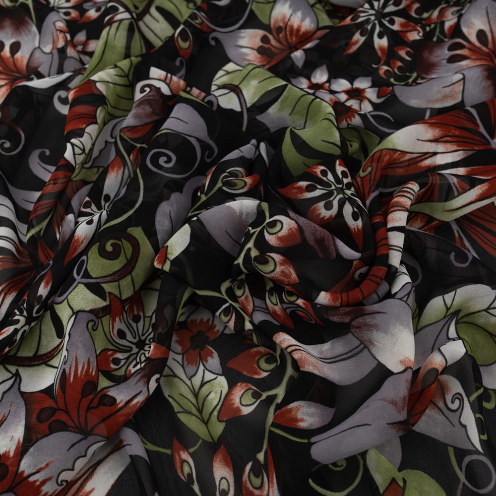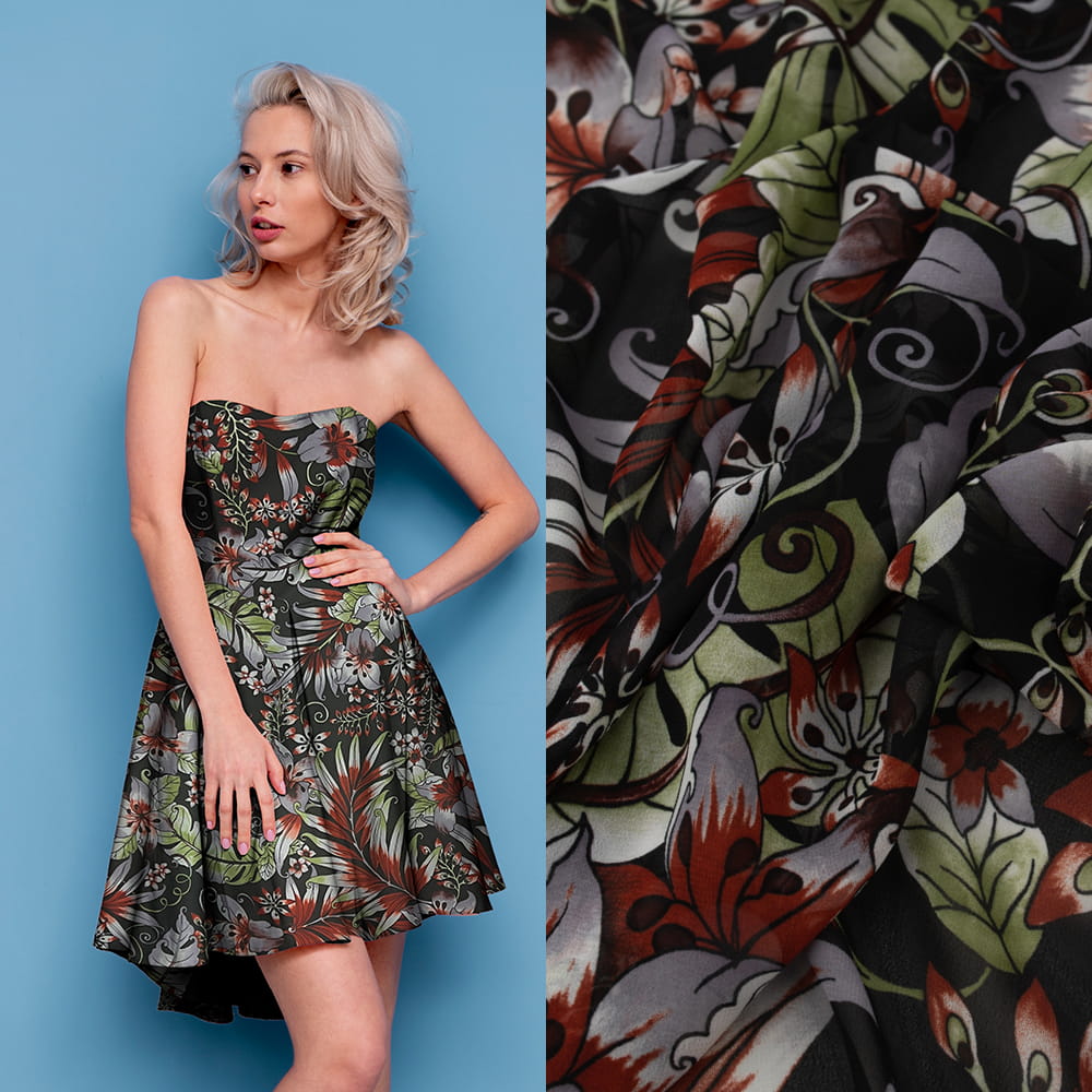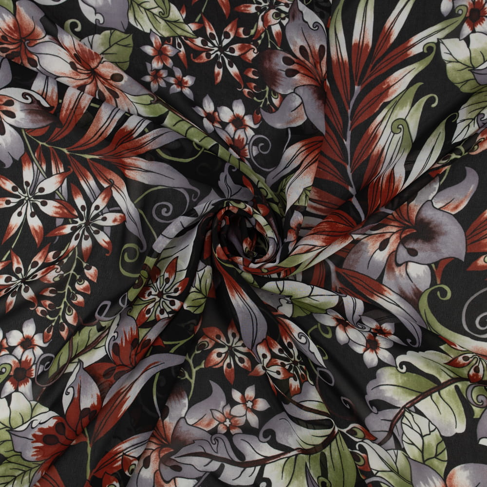 Tkanina Szyfon wzór kwiaty kolor czarny
