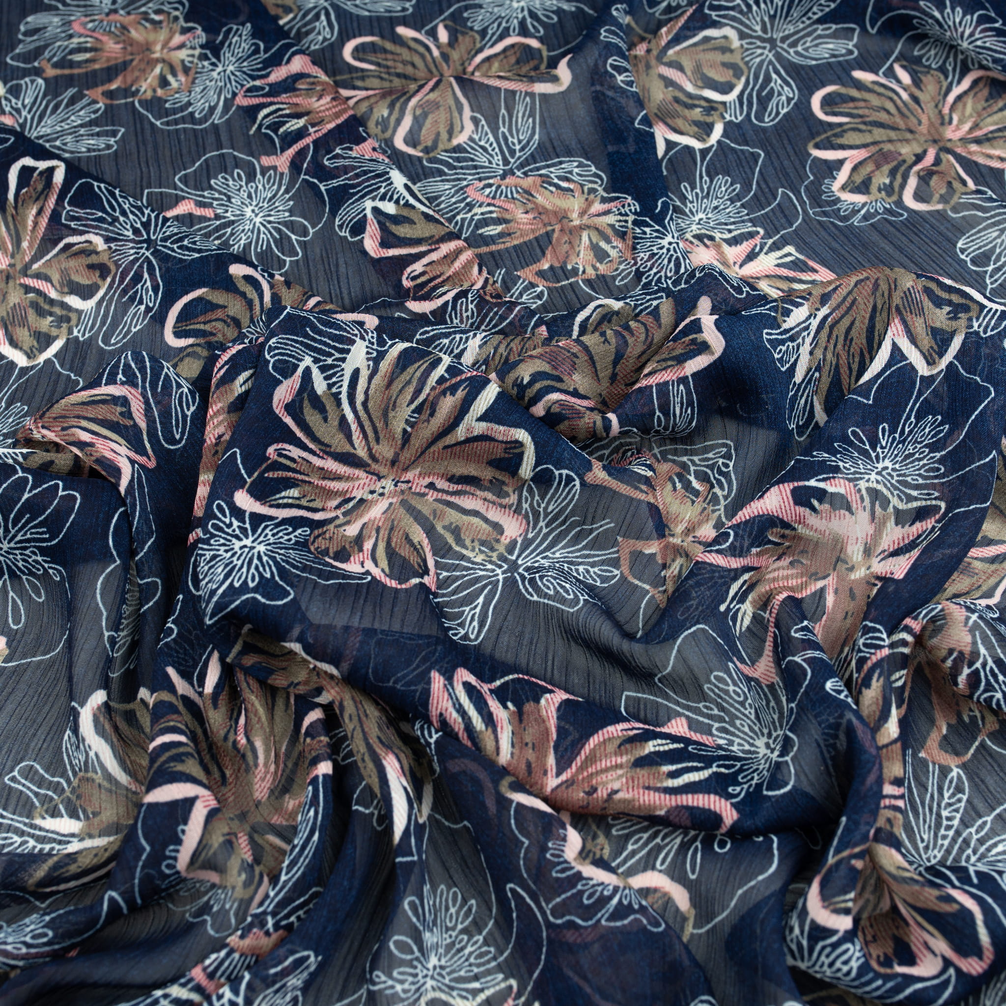 Tkanina Szyfon wzór kwiaty kolor granatowy