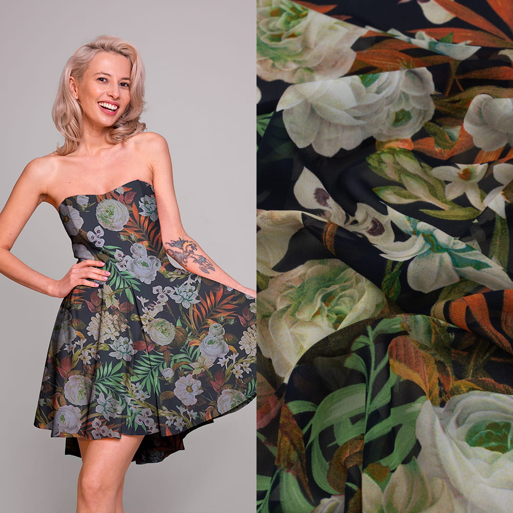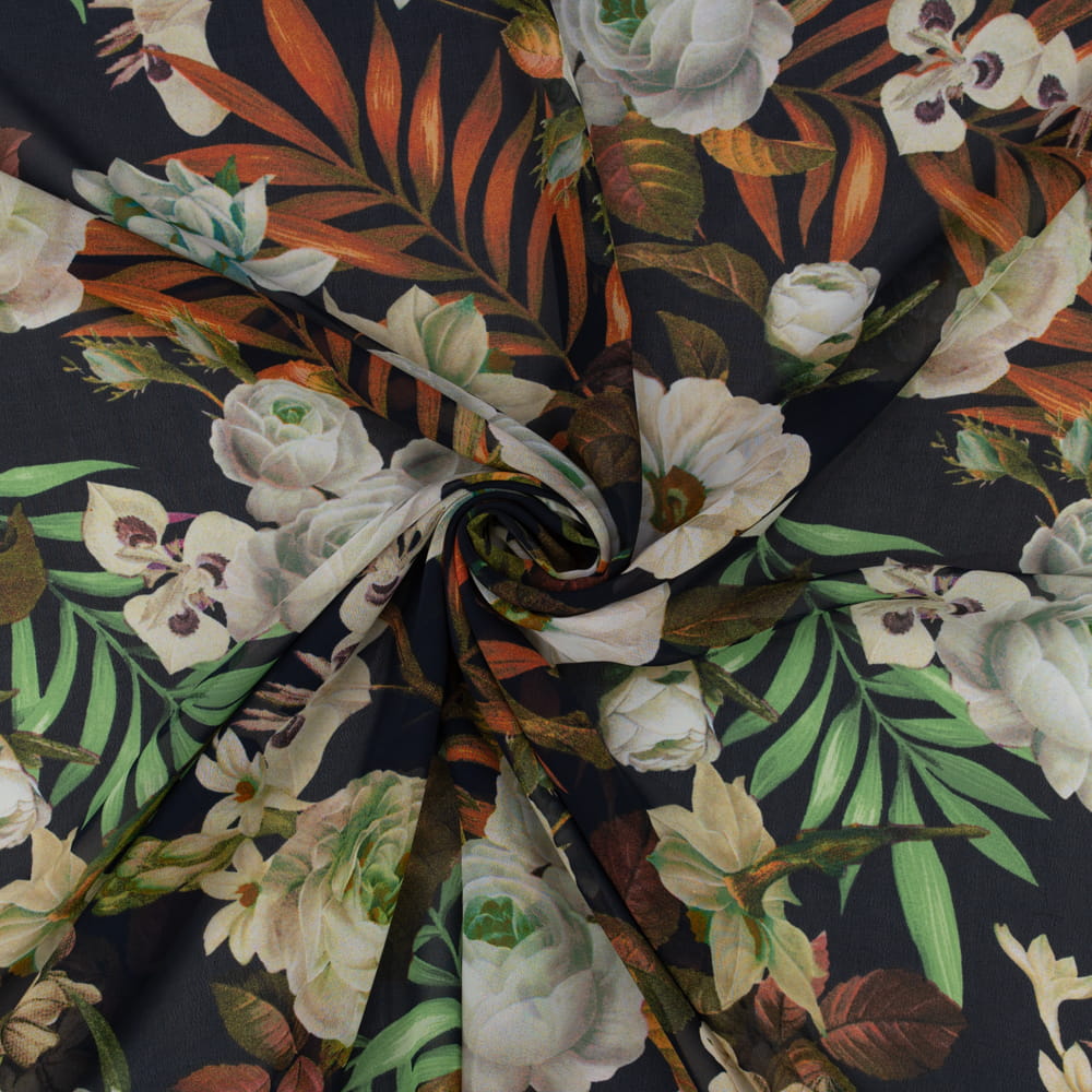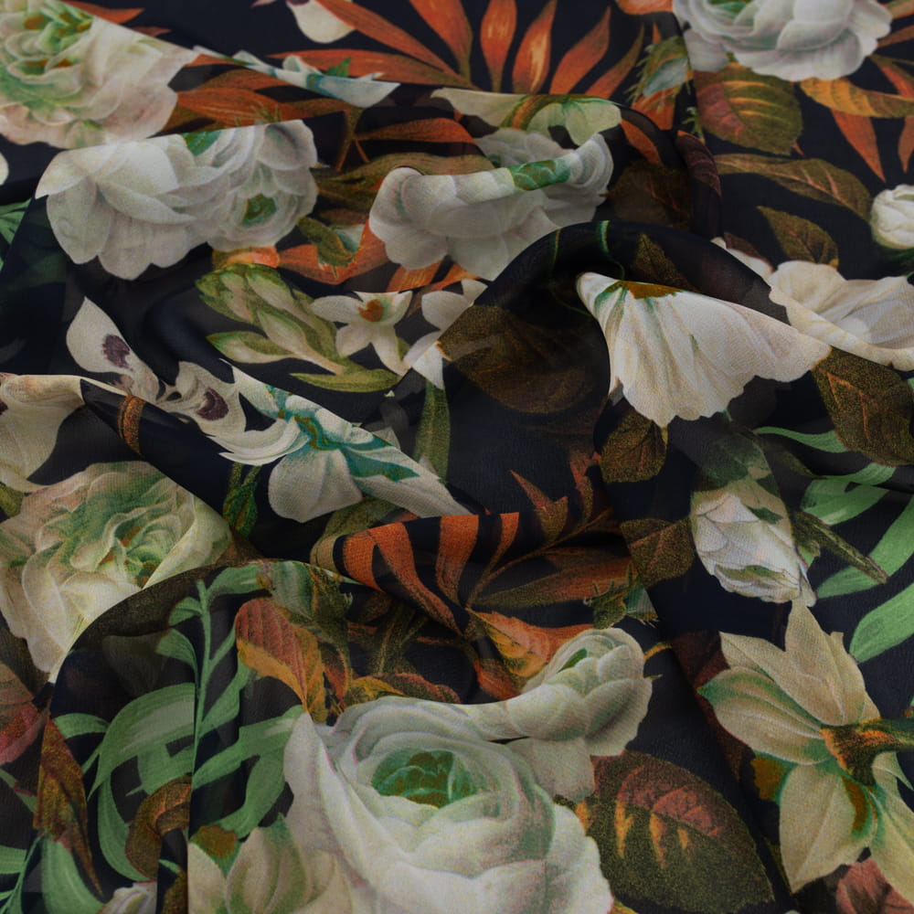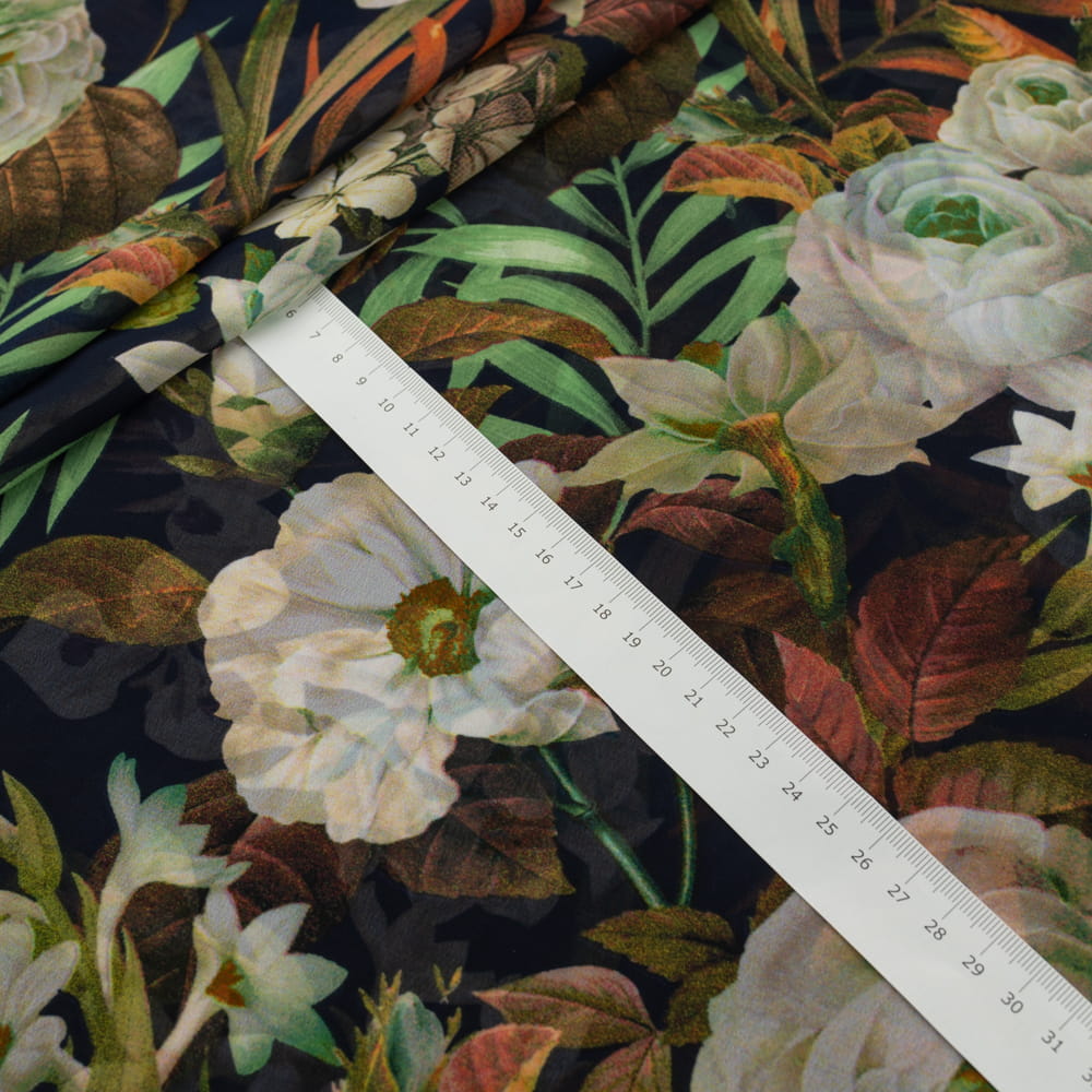 Tkanina Szyfon wzór kwiaty kolor granatowy