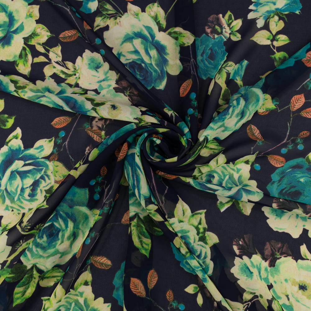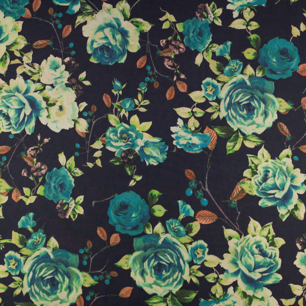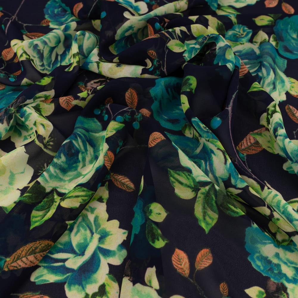 Tkanina Szyfon wzór kwiaty kolor granatowy