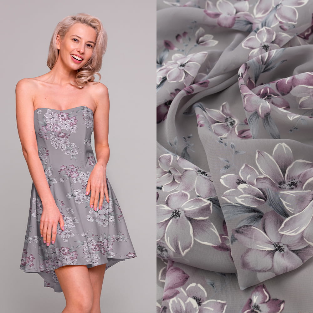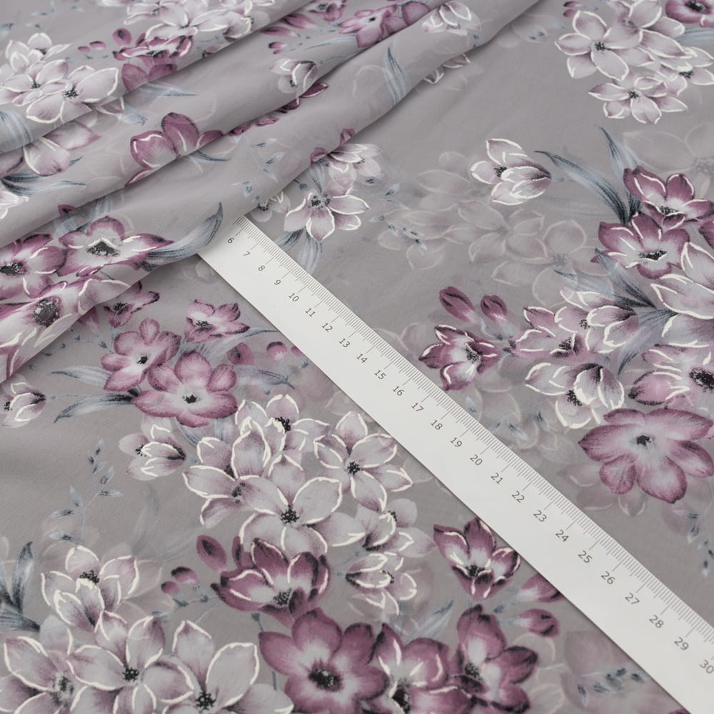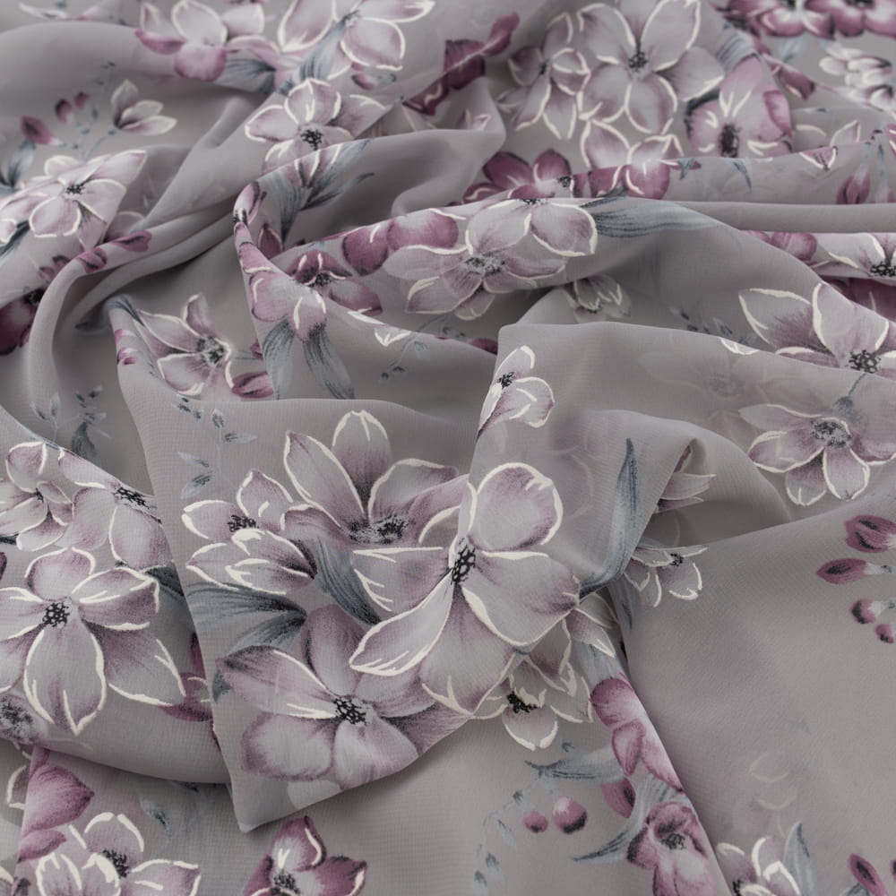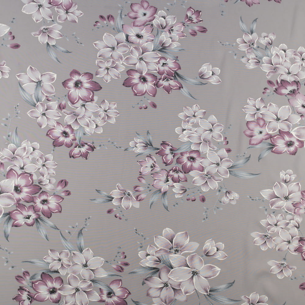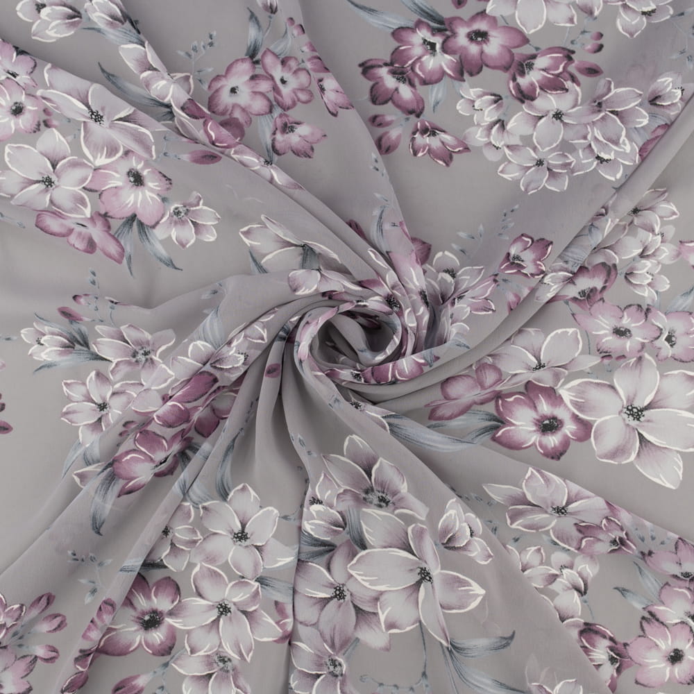 Tkanina Szyfon wzór kwiaty kolor jasny brudny lilowy