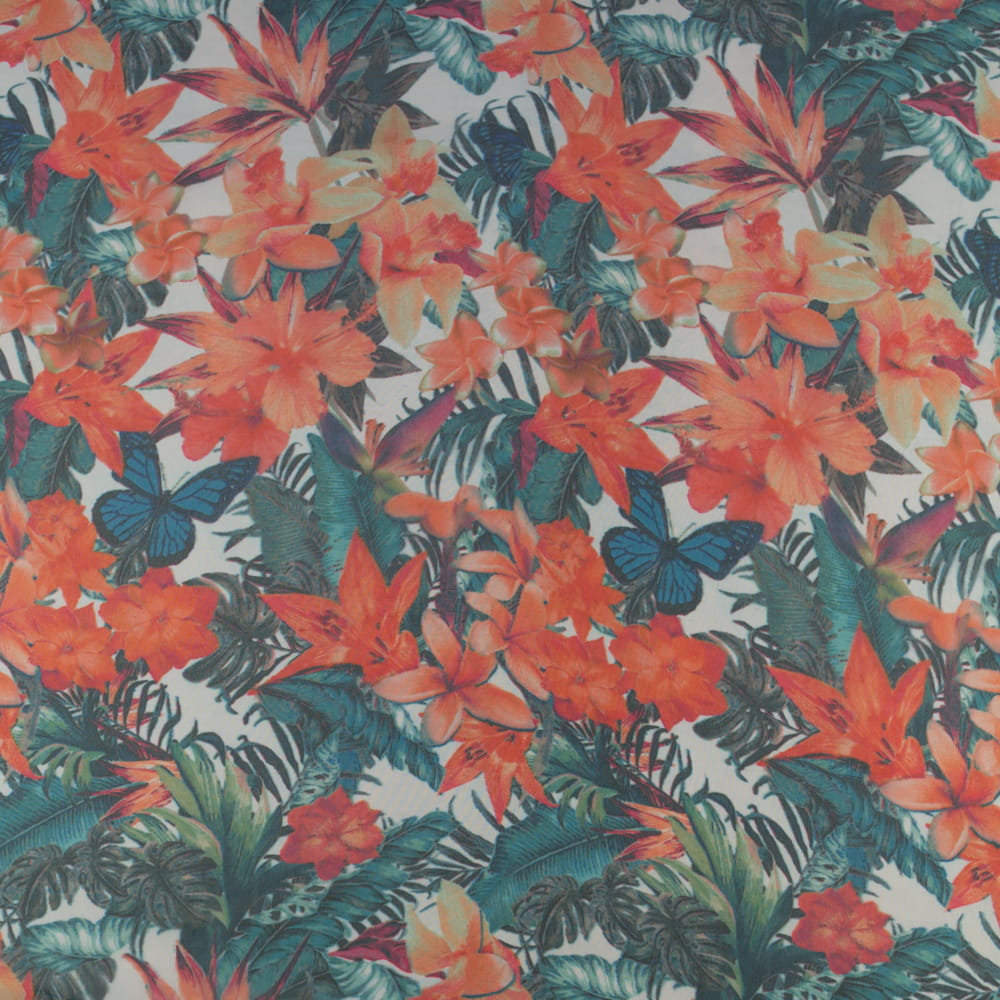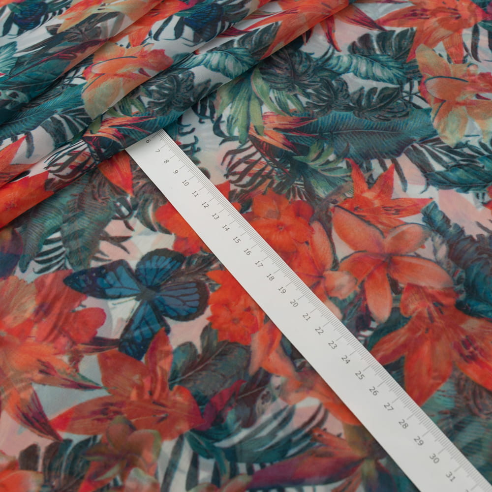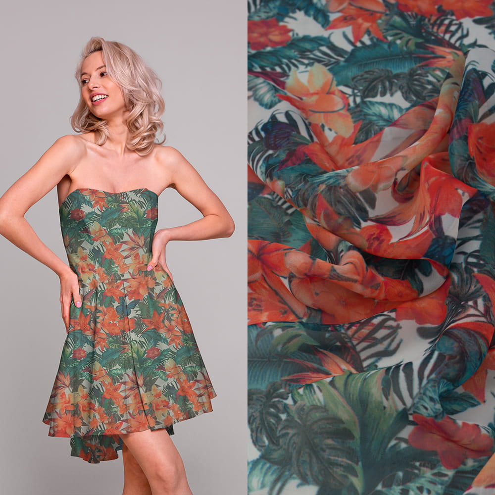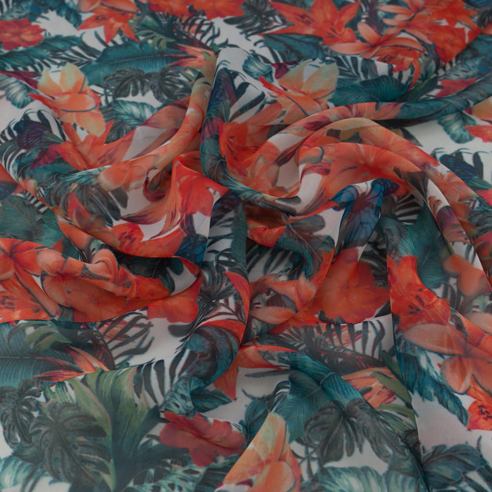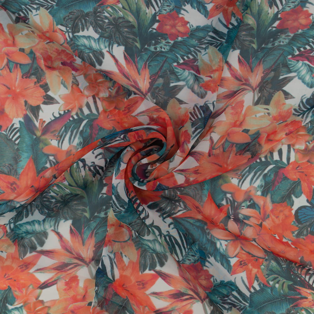 Tkanina Szyfon wzór kwiaty kolor pomarańczowy