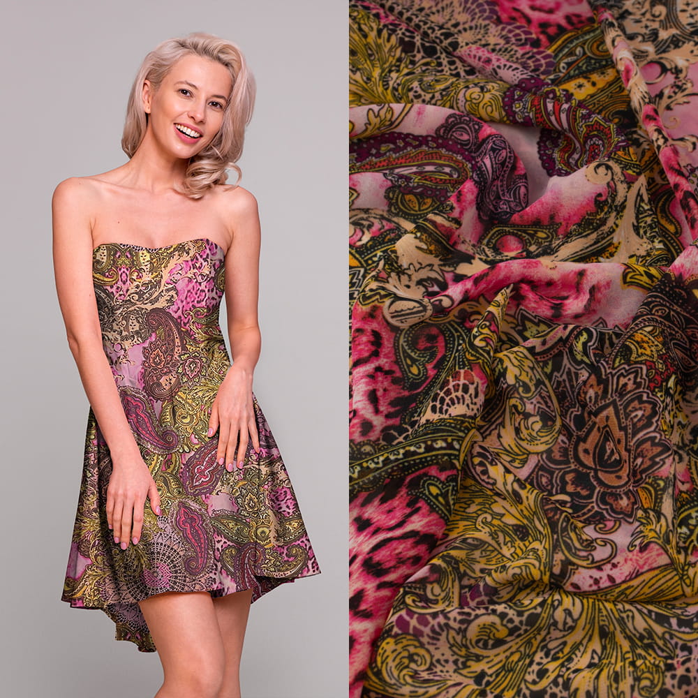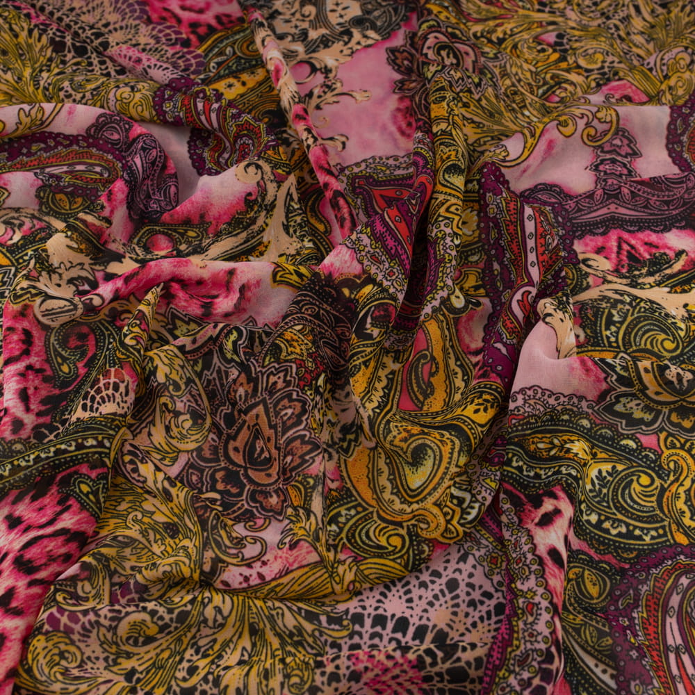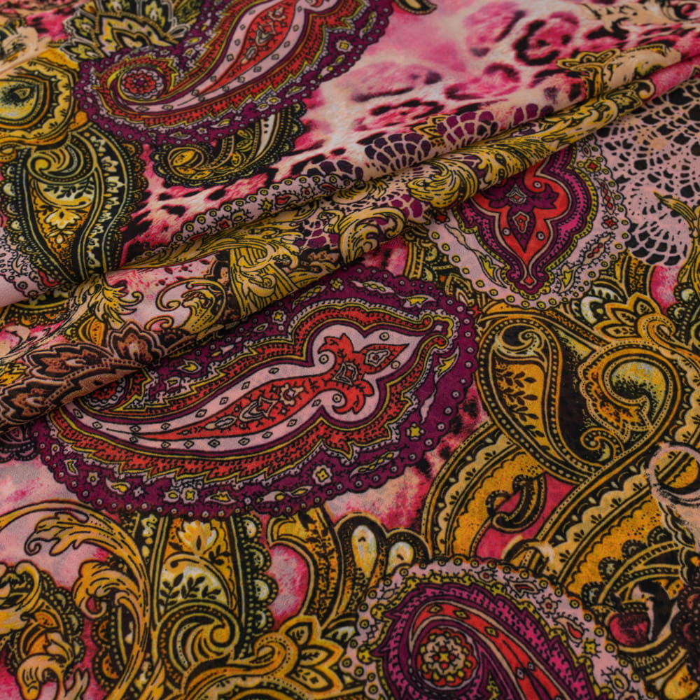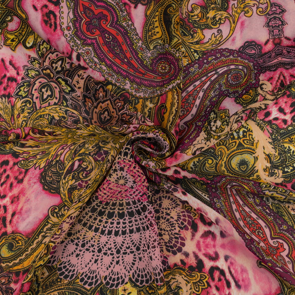Tkanina Szyfon wzór orientalny paisley kolor różowy