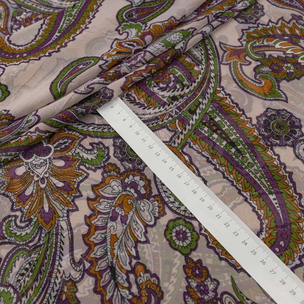 Nadaj swoim projektom subtelności i stylu dzięki szyfonowi w bladoróżowy wzór paisley.