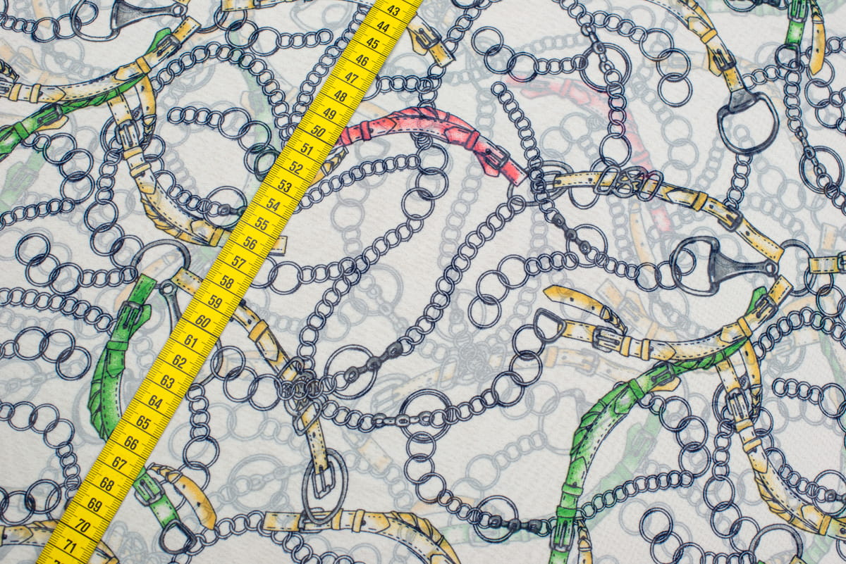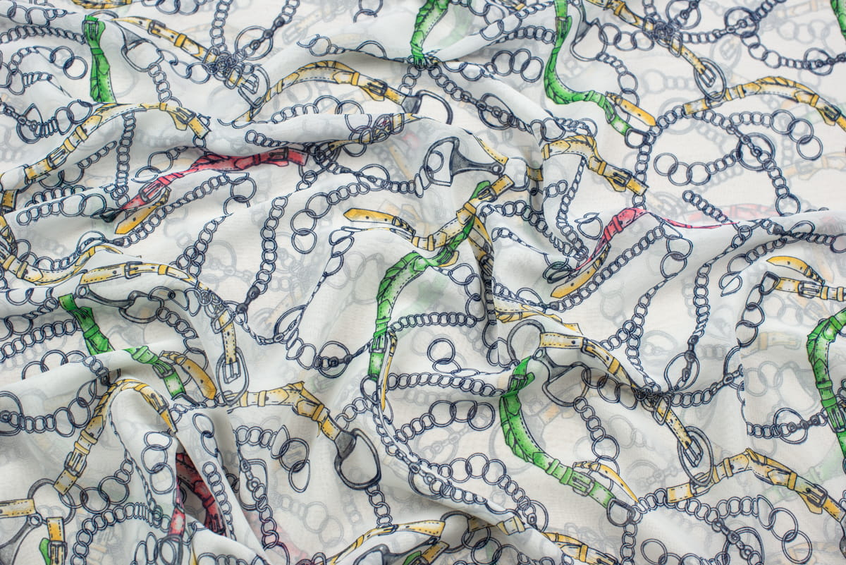 Tkanina Szyfon wzór włoski łańcuchy kolor biały i zielony