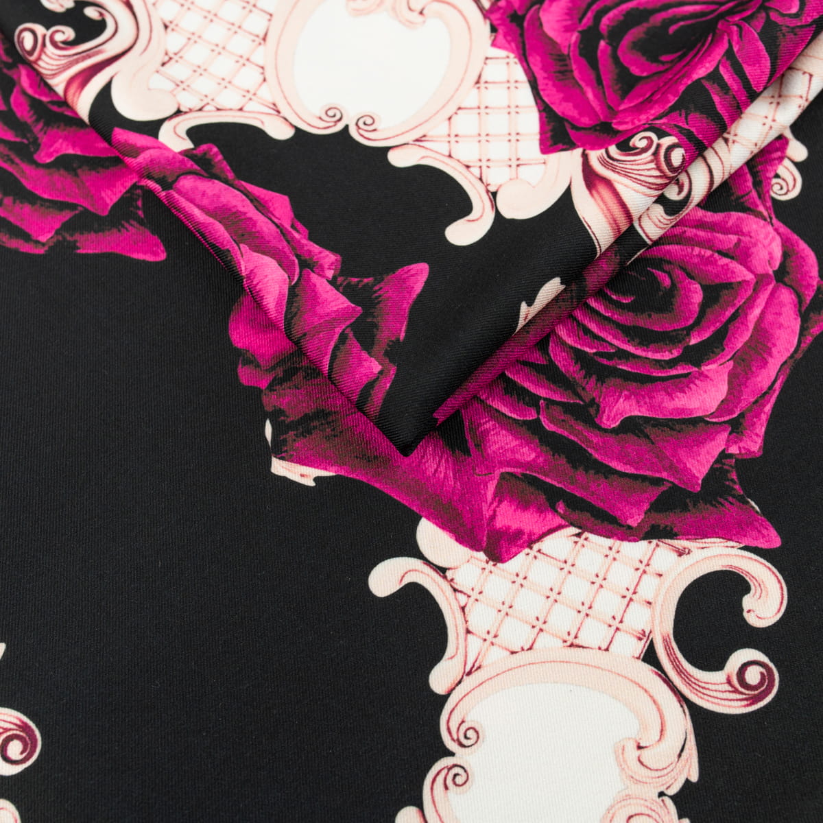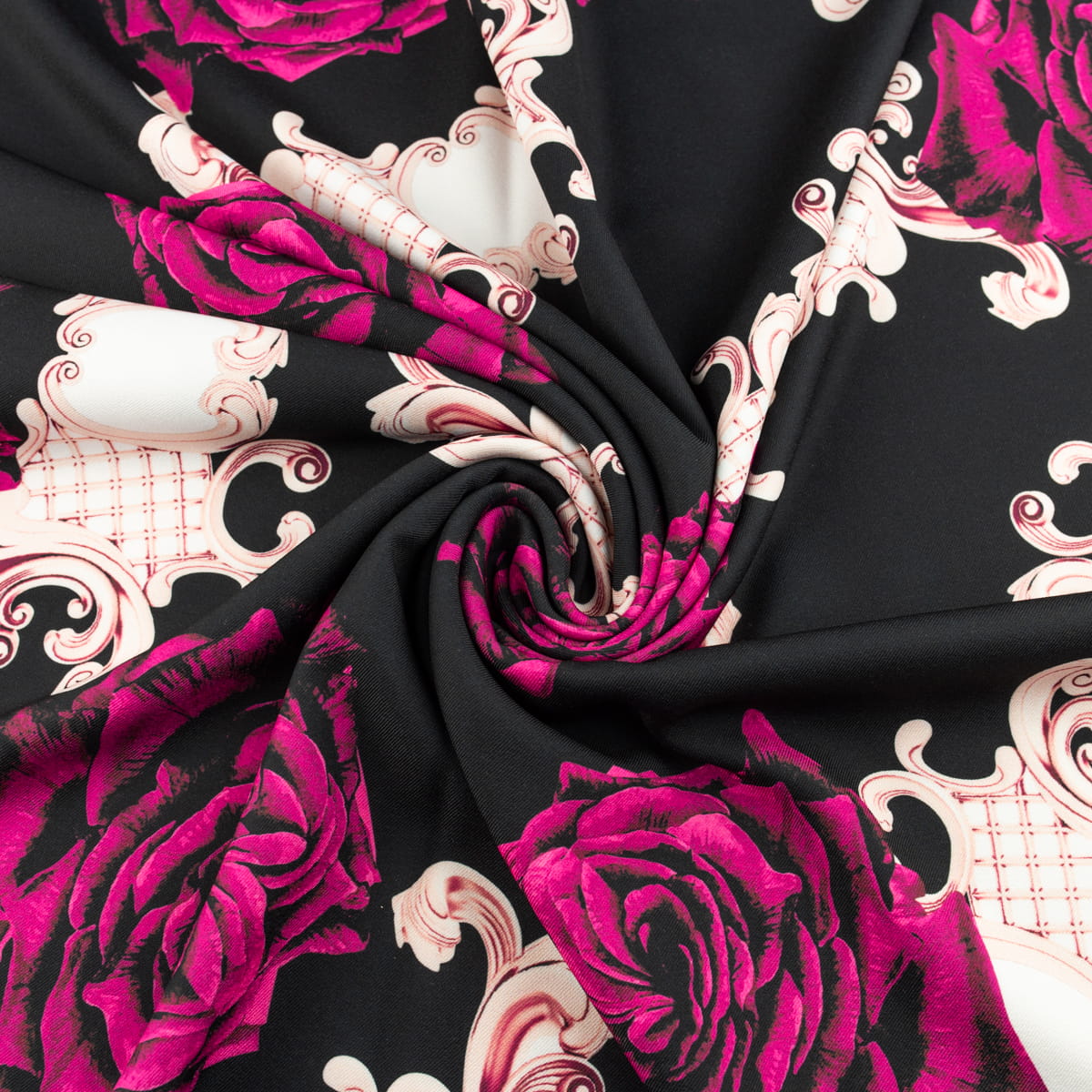 Tkanina wiskozowa twill z różowymi kwiatami na czarnym tle to propozycja dla osób, które cenią elegancję i ponadczasowy design. Zamów teraz i twórz unikalne stylizacje pełne klasy i wdzięku!