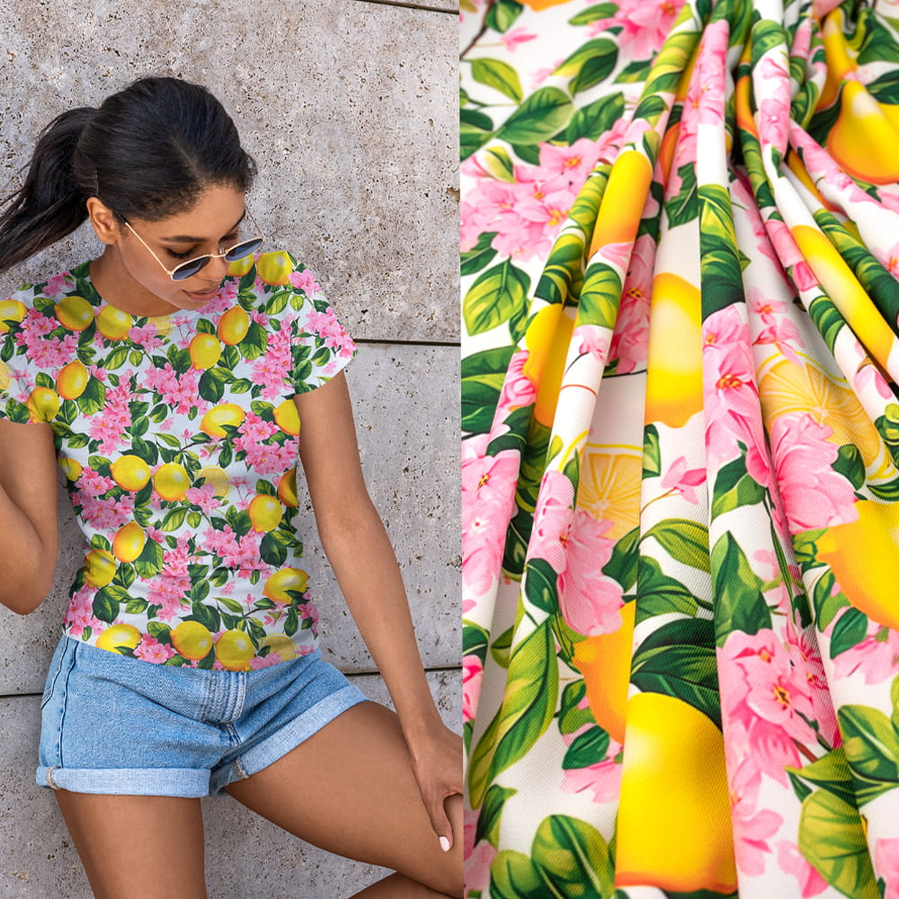 Tkanina wiskozowa twill z wzorem cytryn na białym tle to doskonała propozycja dla osób ceniących świeży, letni styl inspirowany włoską elegancją. Zamów już teraz i stwórz unikatowe stylizacje!