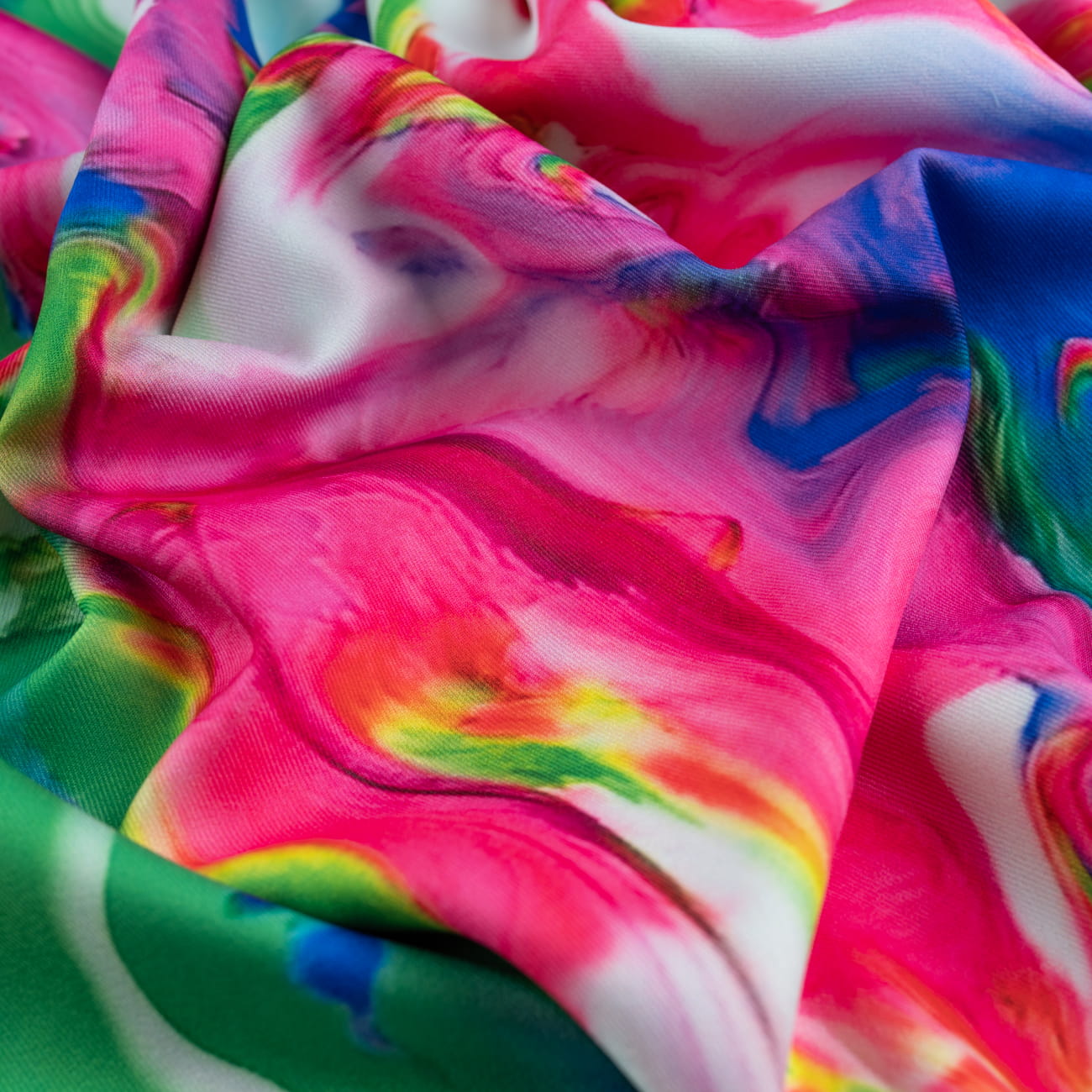 Ta tkanina to idealne połączenie sztuki, wygody i nowoczesnej elegancji. Wprowadź barwną energię do swojej szafy dzięki wyjątkowemu printowi!