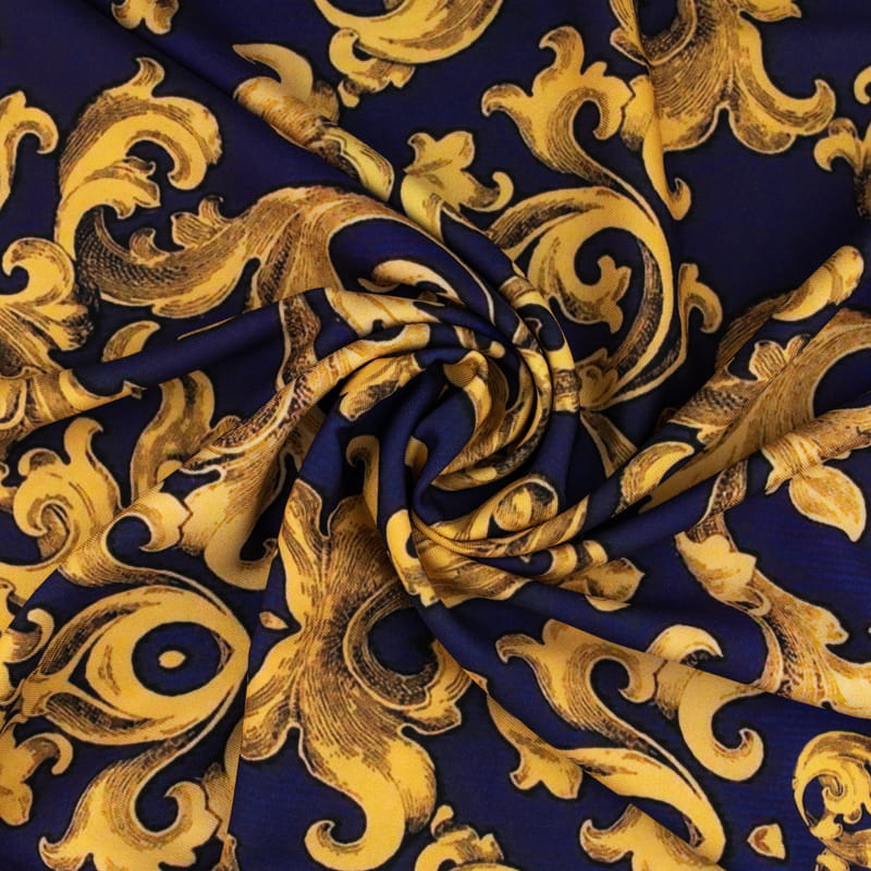 Tkanina wiskozowa twill z ornamentalnym wzorem w fioletowej kolorystyce to doskonały wybór dla osób, które cenią elegancję i niebanalne wzory. Zamów teraz i stwórz wyjątkowe stylizacje!