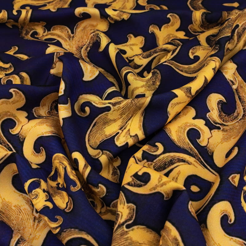 Elegancja i szyk w wyjątkowym wydaniu – tkanina wiskozowa typu twill z ornamentalnym wzorem w odcieniach fioletu to propozycja dla osób, które cenią klasykę z nutą luksusu. Wyrafinowane detale i bogaty kolor nadają tkaninie unikalny, elegancki charakter. Jej miękka, lekko elastyczna struktura zapewnia wygodę noszenia oraz doskonałe układanie się na sylwetce. Idealna na kreacje o wyrazistym, artystycznym stylu.