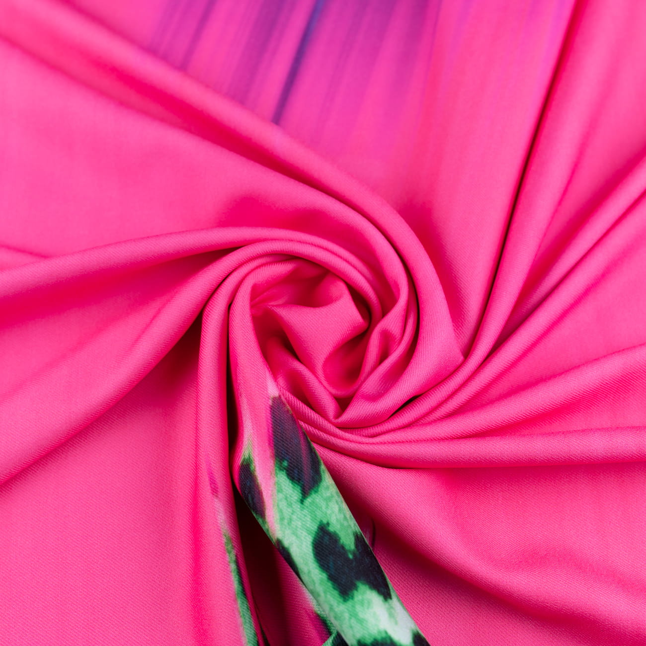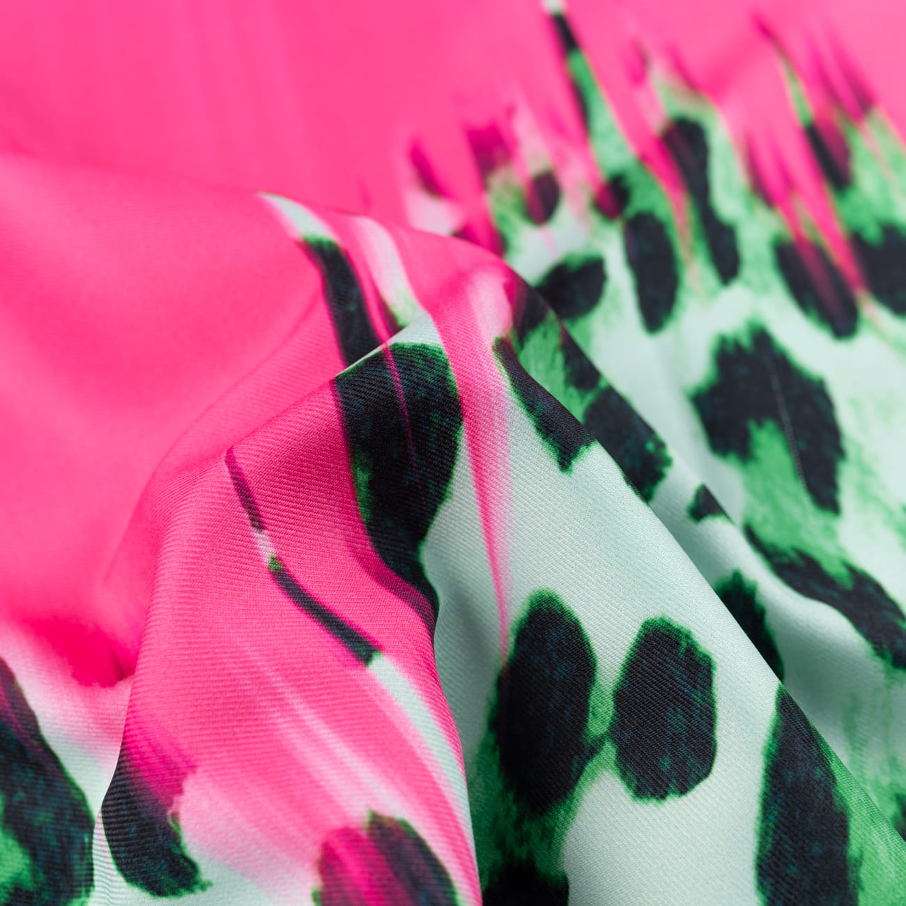 Tkanina Wiskoza Twill – wzór panterka + mazany, zielono-różowy – idealna do: