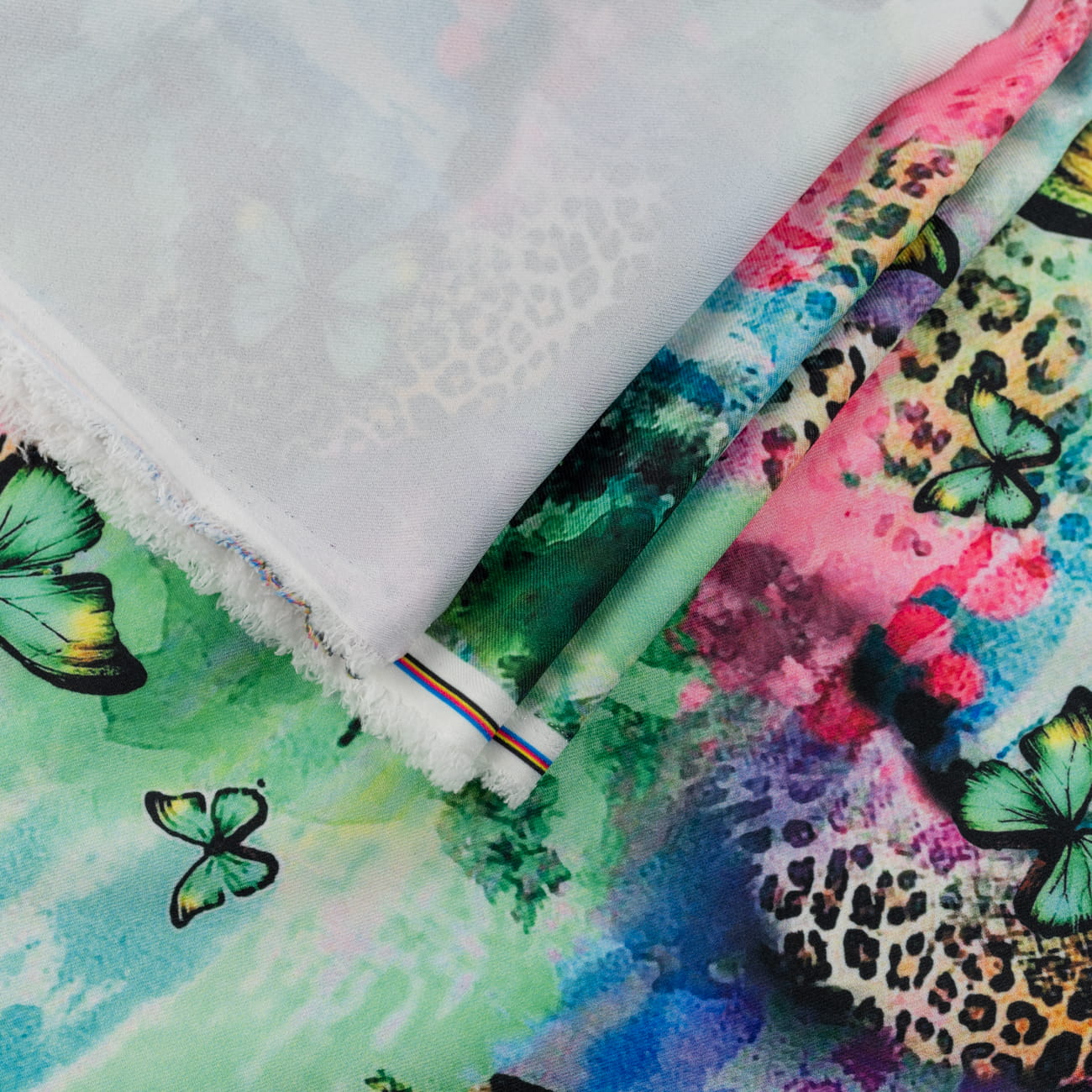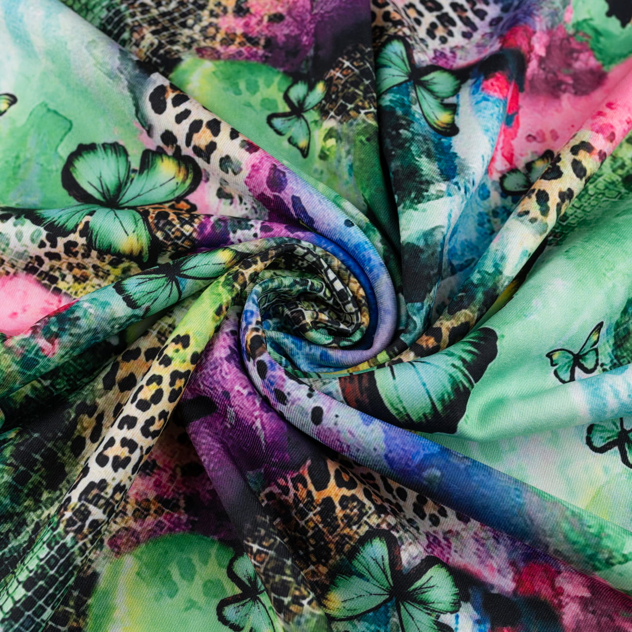 Tkanina Wiskoza Twill z wyjątkowym połączeniem wzoru panterki i motyli w odcieniach zieleni to materiał dla osób, które cenią oryginalność i artystyczną odwagę. Drapieżny print nabiera lekkości dzięki obecności delikatnych motyli, a zielona paleta barw wprowadza spokój i harmonię. To tkanina, która inspiruje do tworzenia projektów z charakterem.