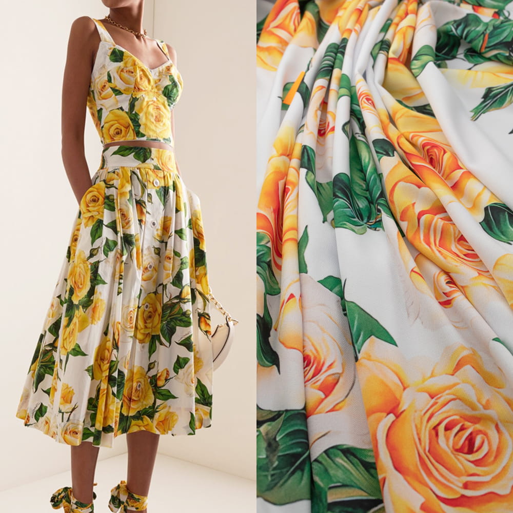 Tkanina wiskozowa twill z wzorem róż na białym tle to doskonała propozycja dla osób ceniących ponadczasowy styl i subtelną elegancję. Zamów już teraz i stwórz wyjątkowe kreacje!