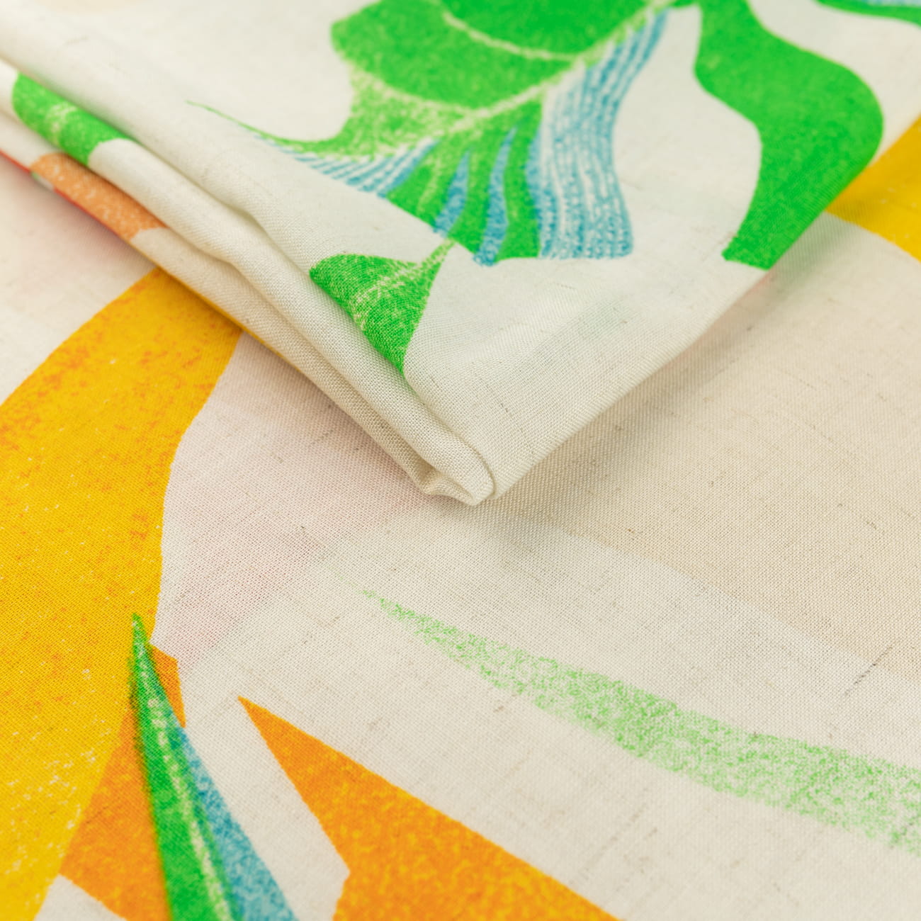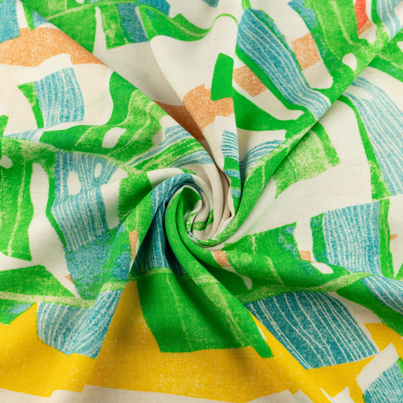 Tkanina Wiskoza Zacinka – wzór liście, tło jasny beż