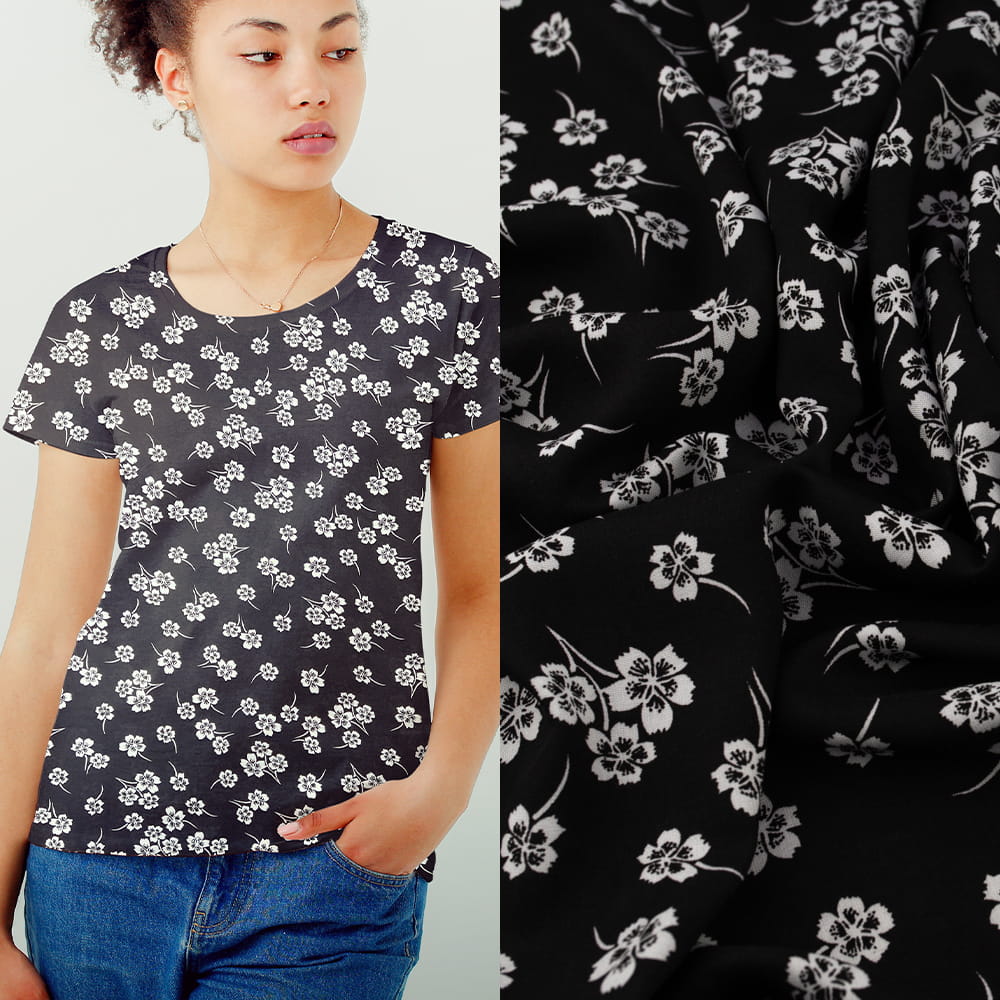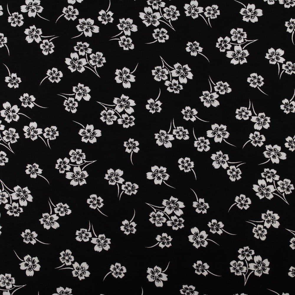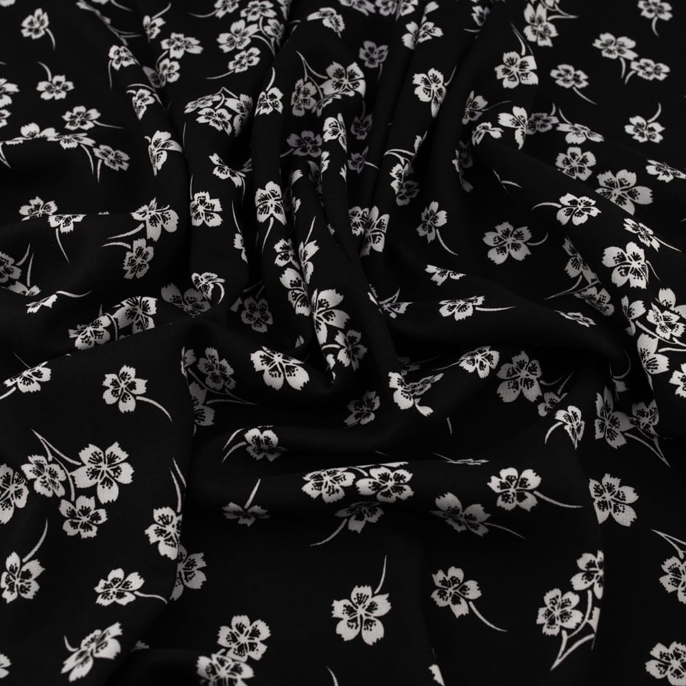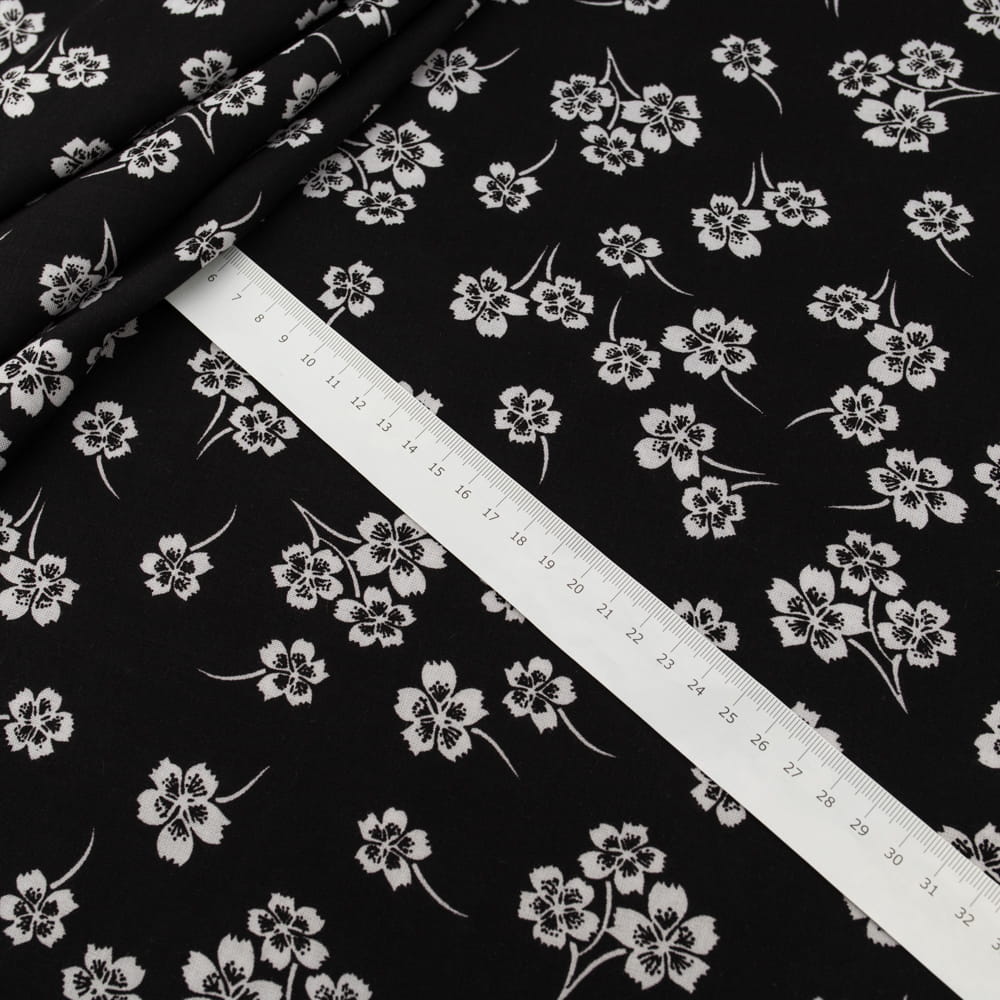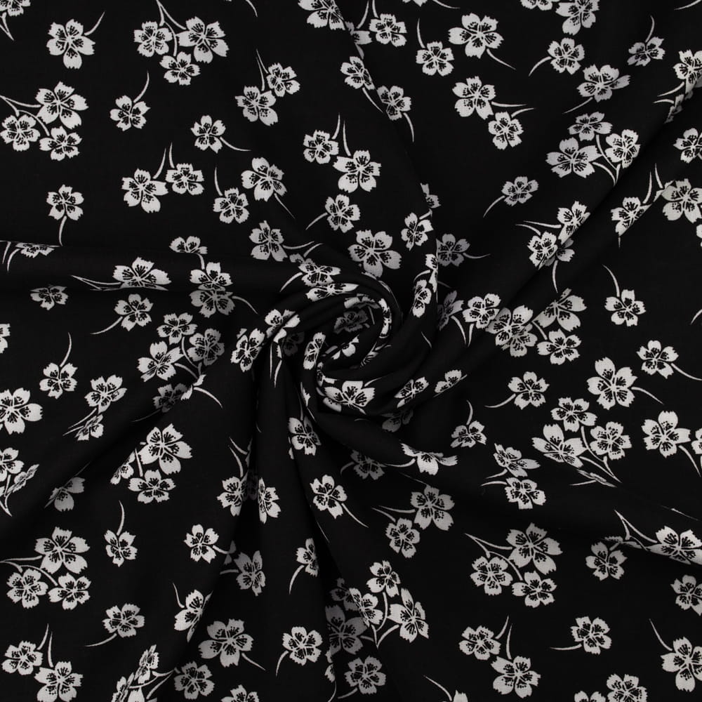 Tkanina Wiskoza – wzór kwiatki, kolor czarny
