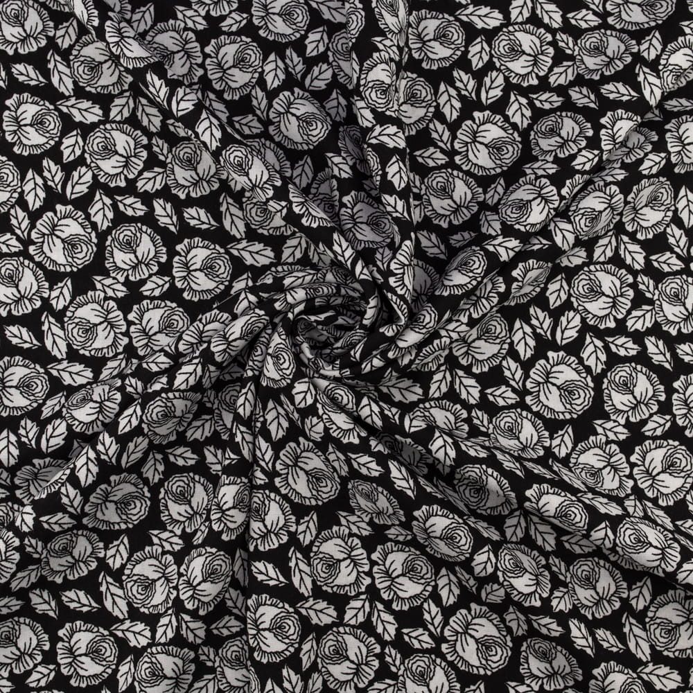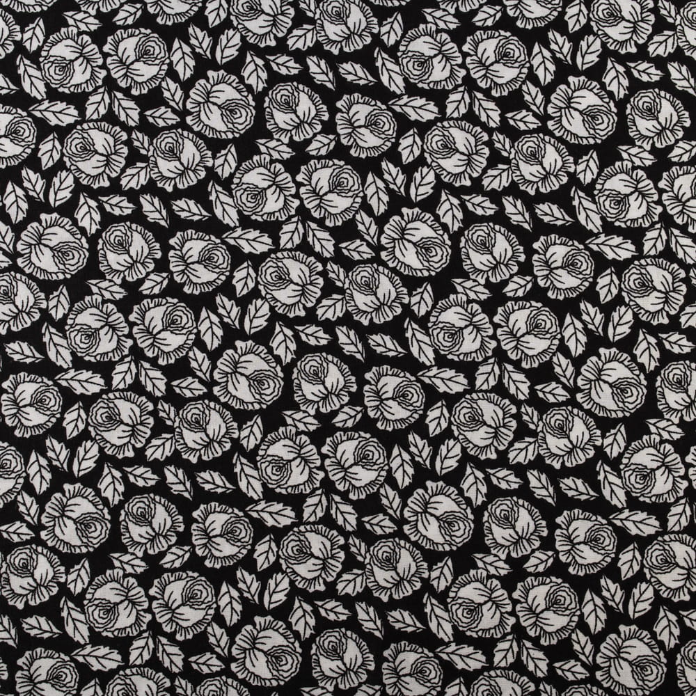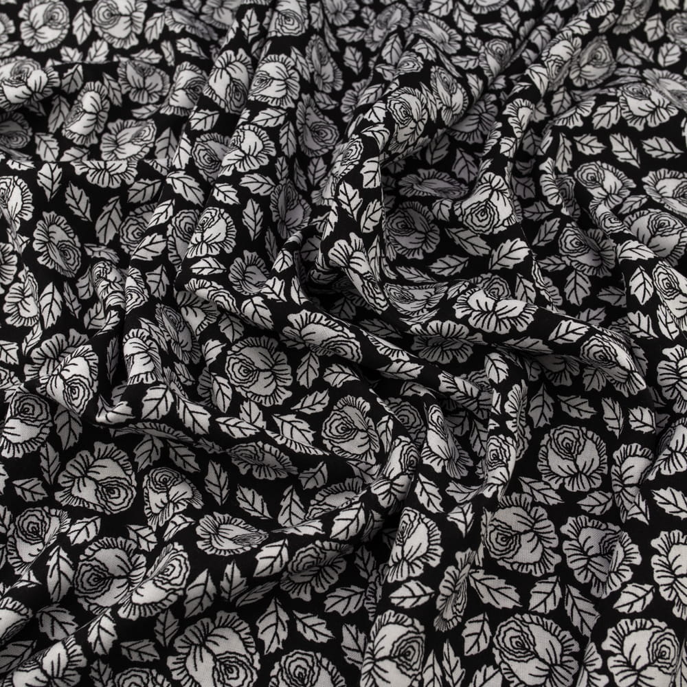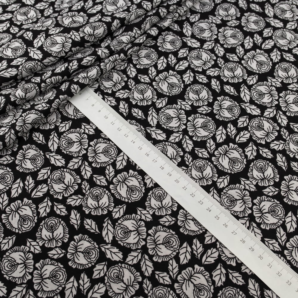 Tkanina Wiskoza – wzór kwiatki, kolor czarny
