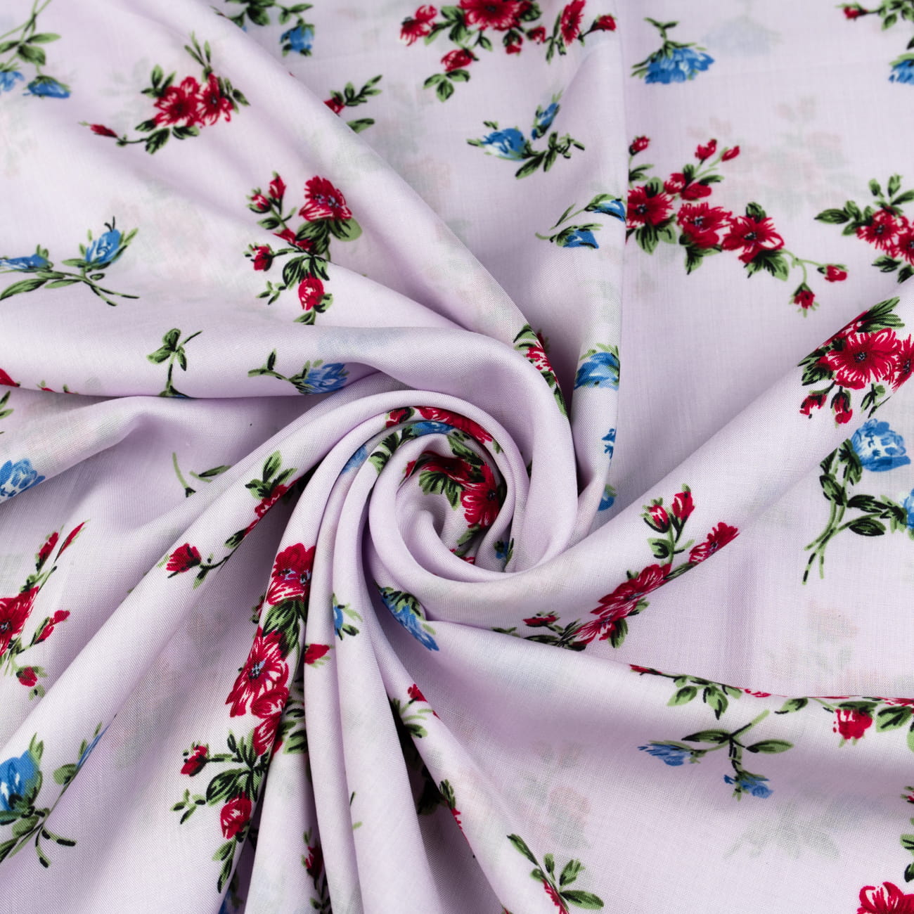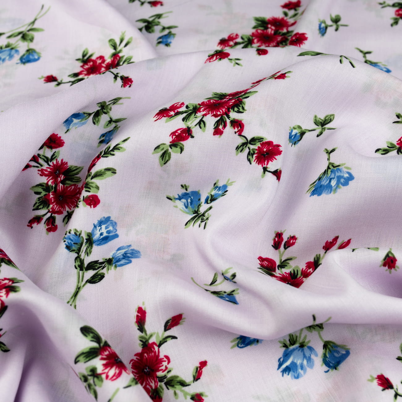Tkanina Wiskoza wzór kwiatki na liliowym tle