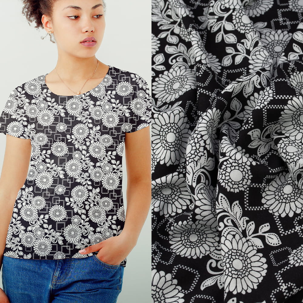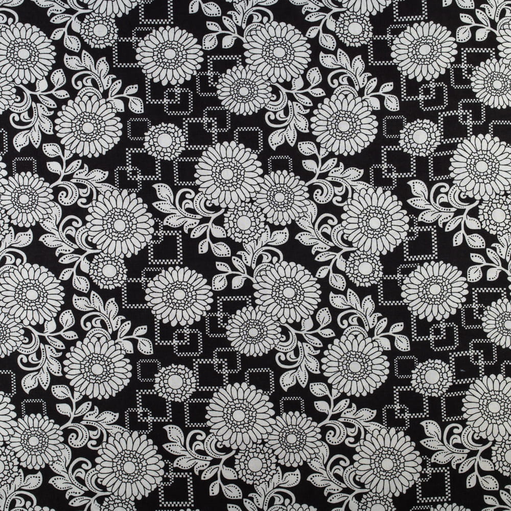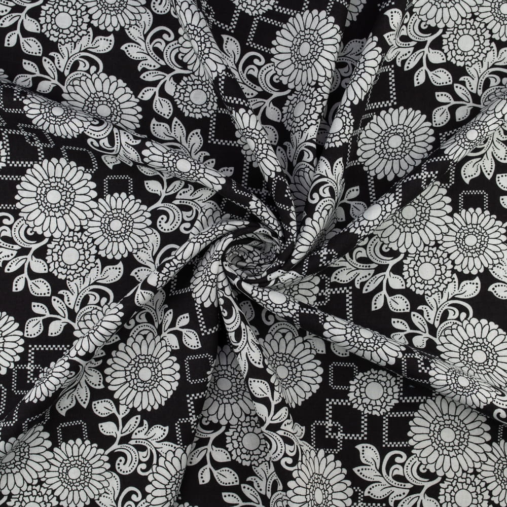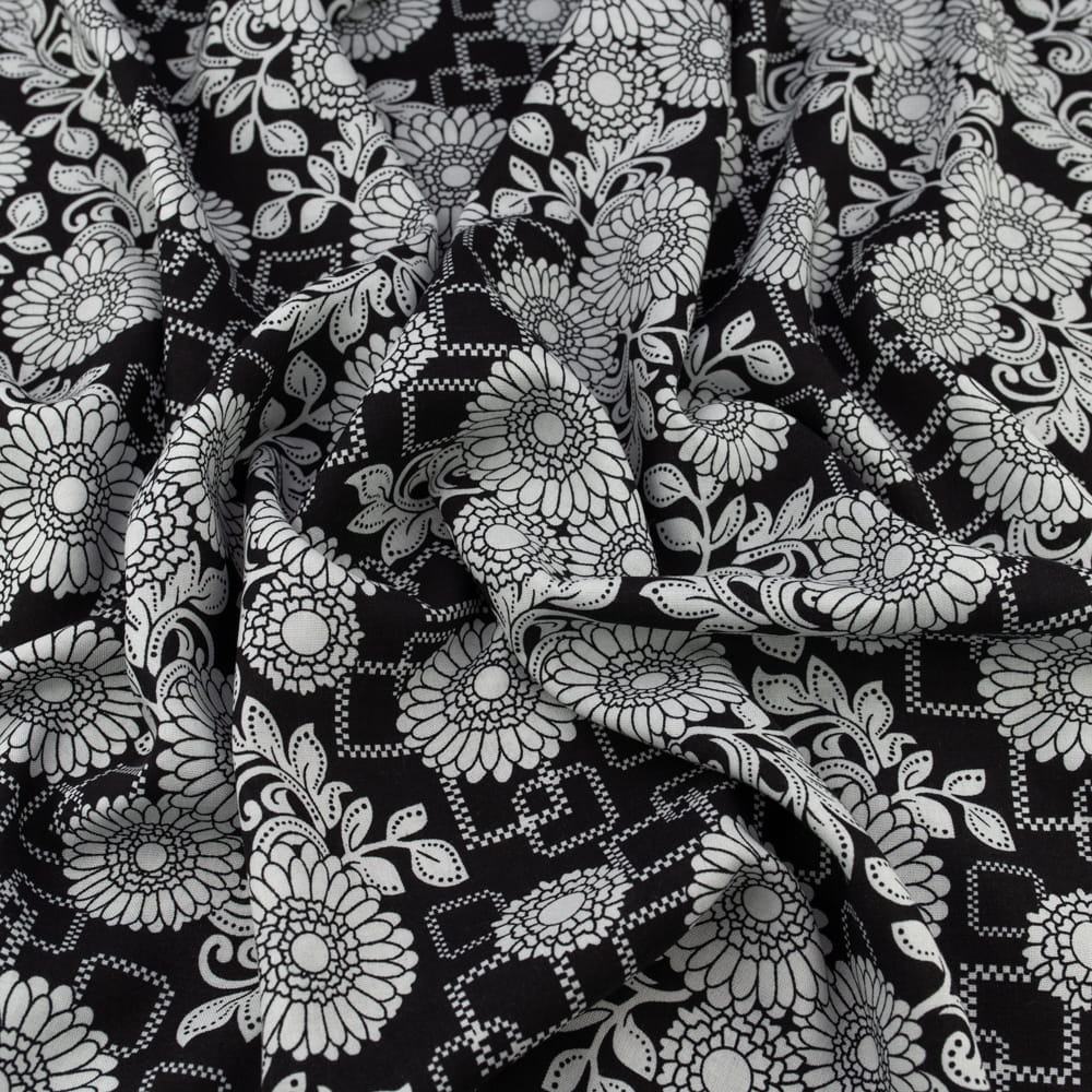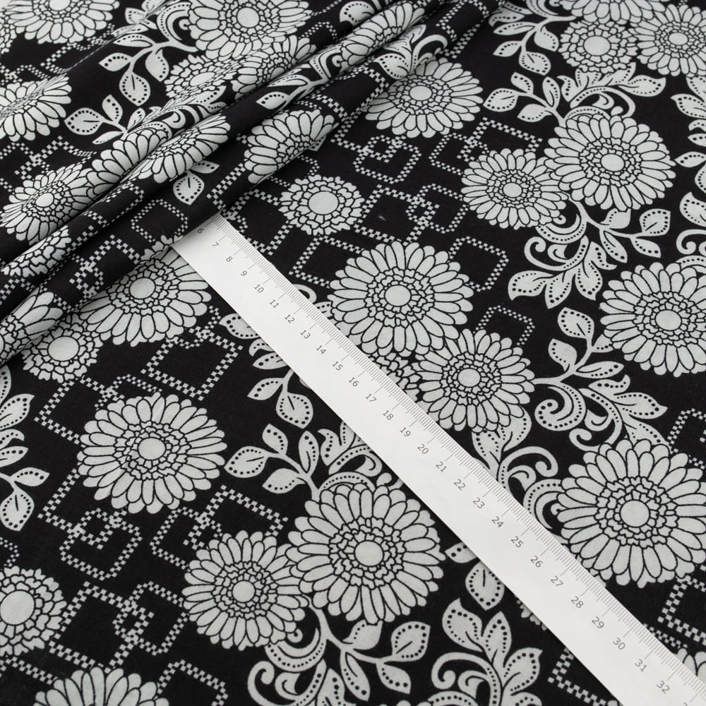 Tkanina Wiskoza – wzór kwiaty, kolor czarny