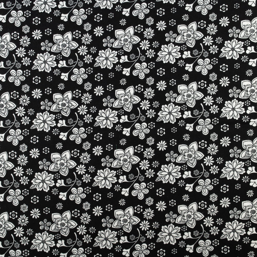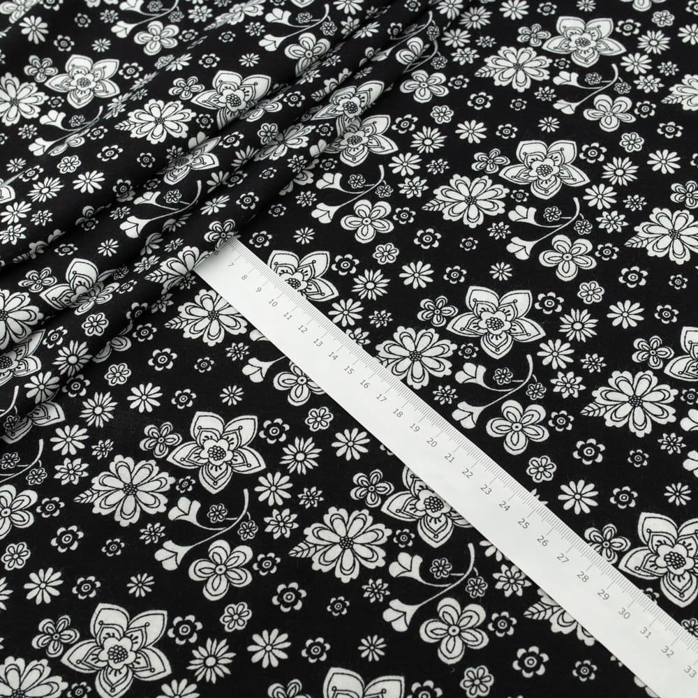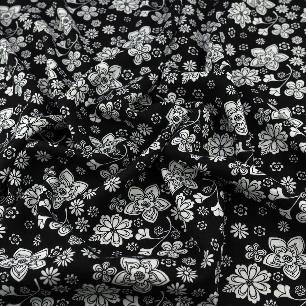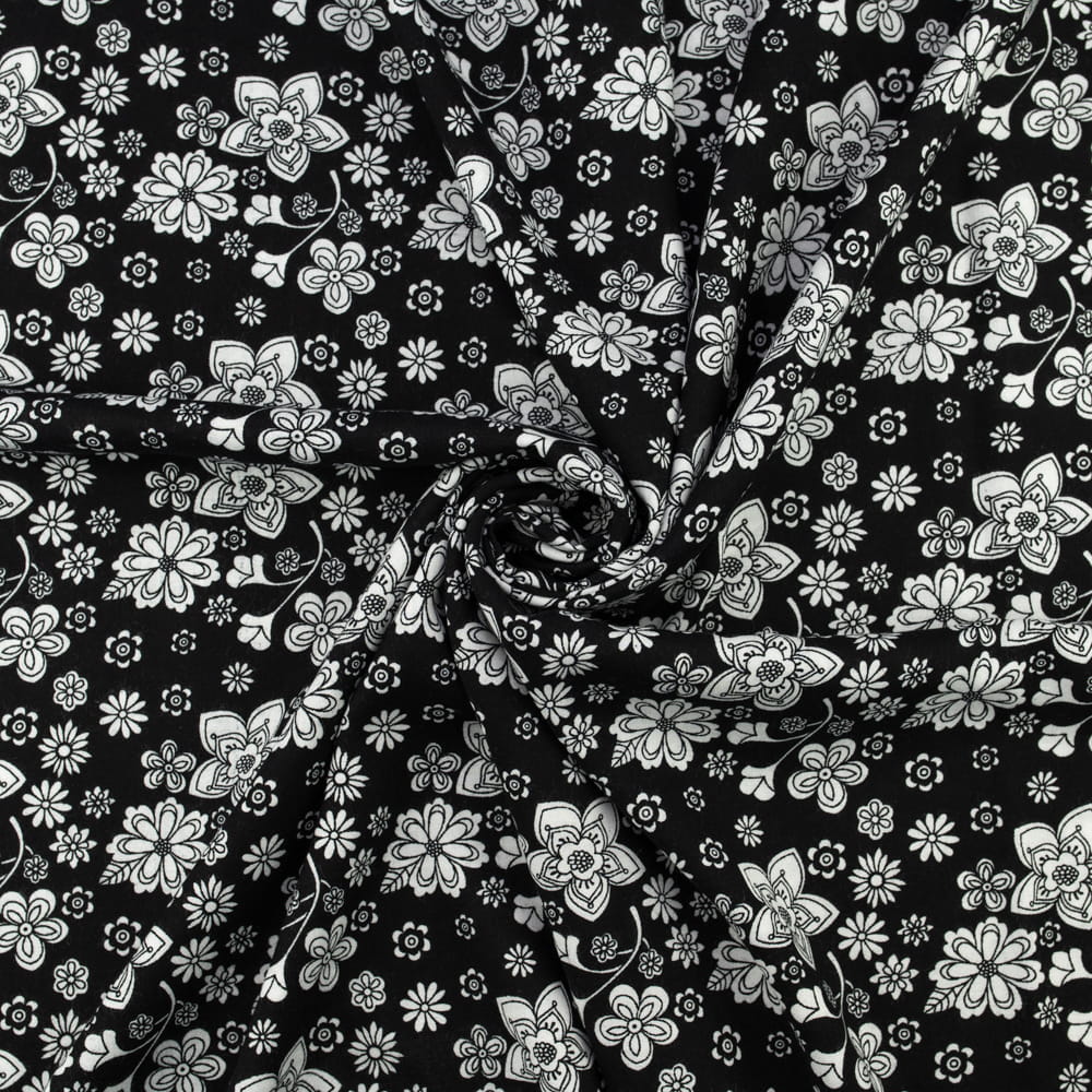 Tkanina Wiskoza – wzór kwiaty, kolor czarny