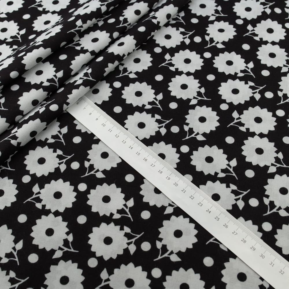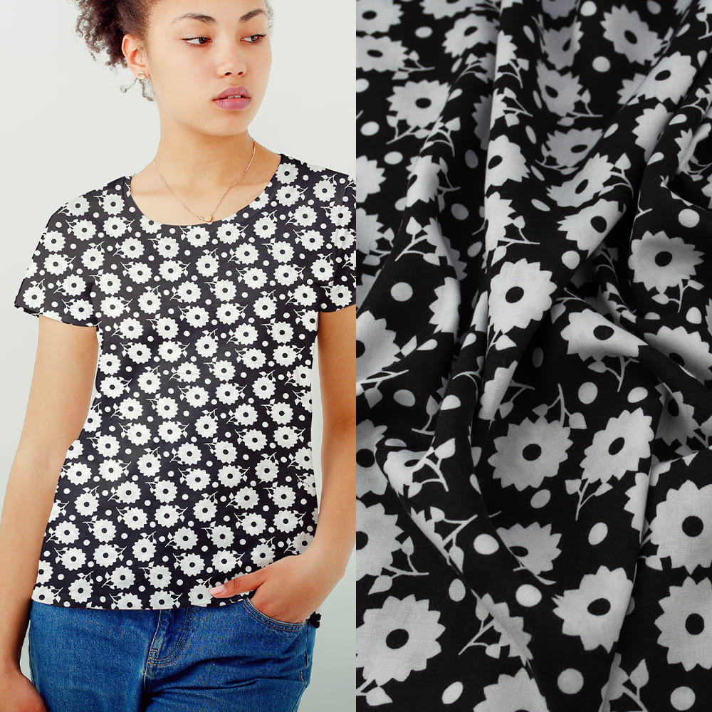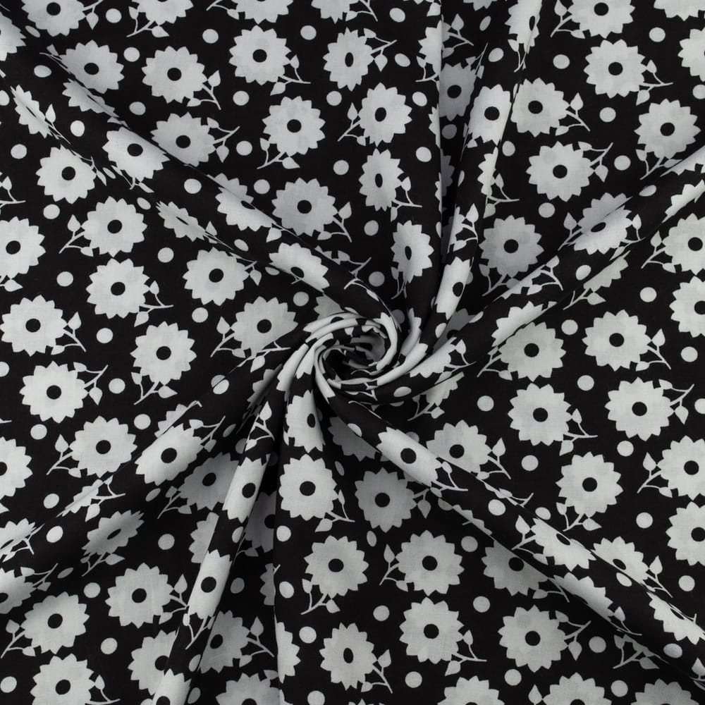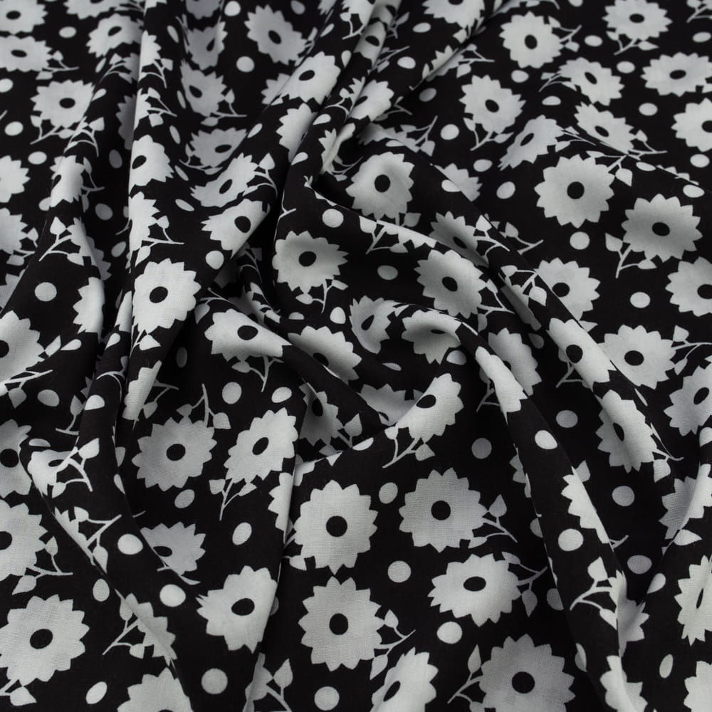 Tkanina Wiskoza – wzór kwiaty, kolor czarny