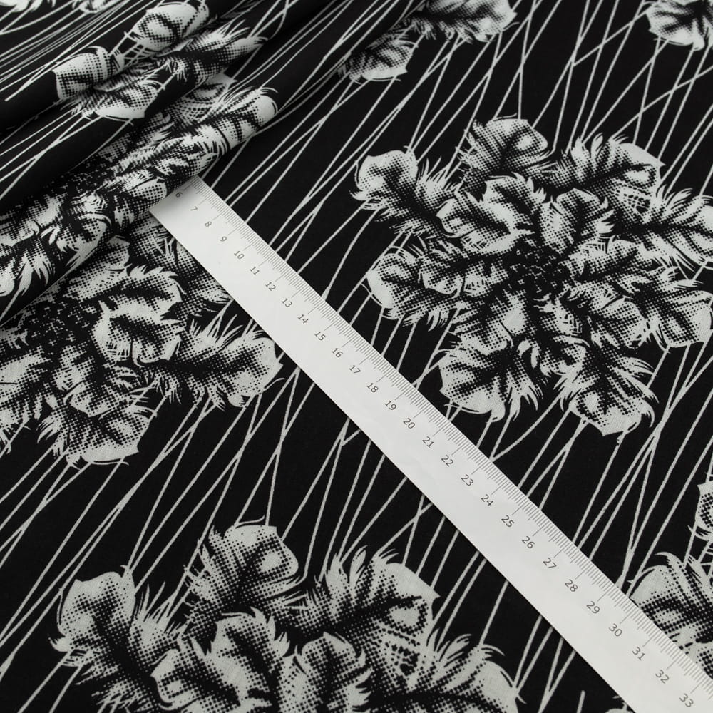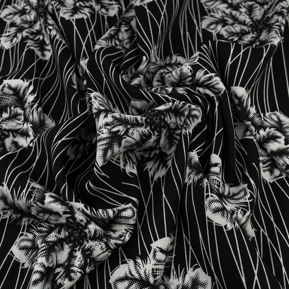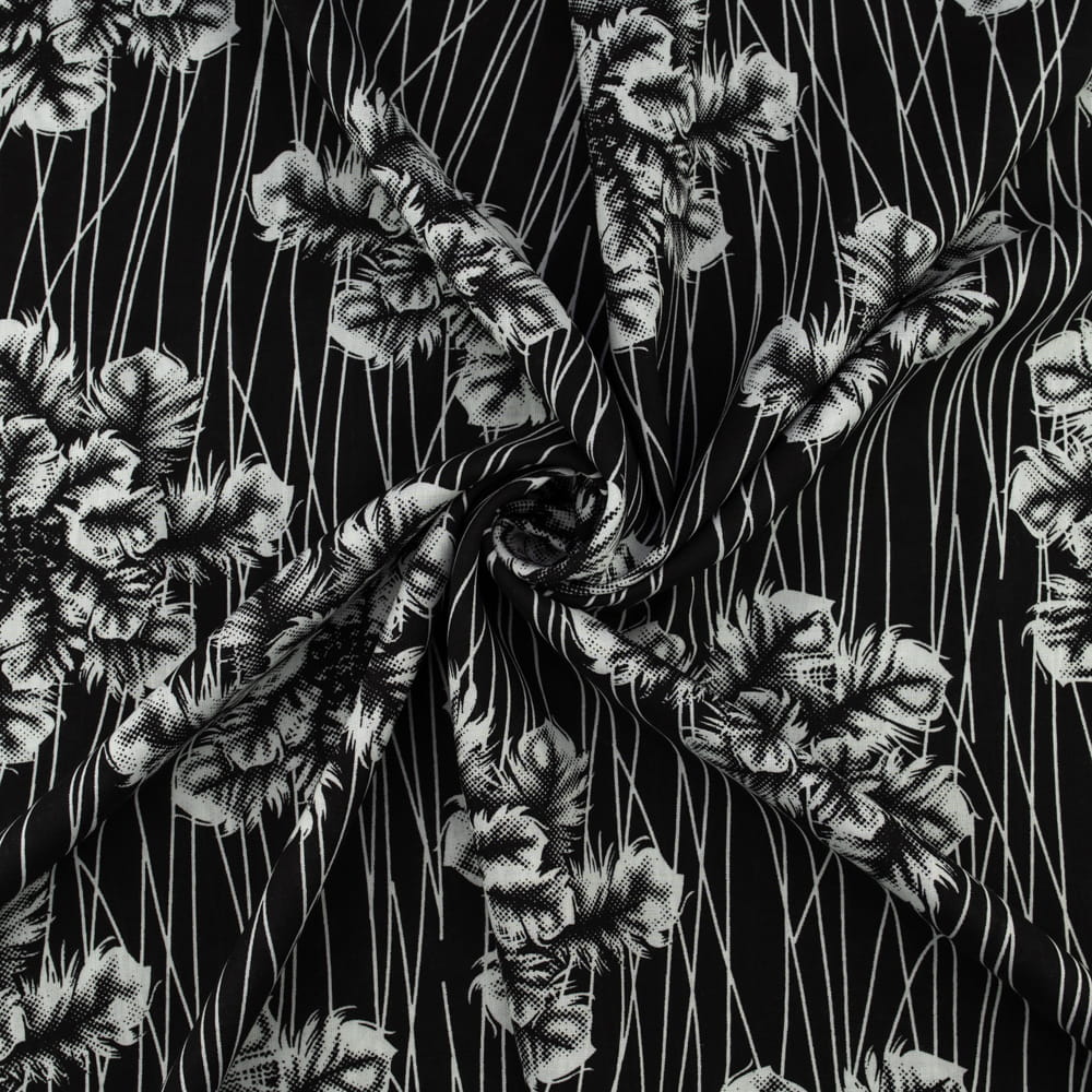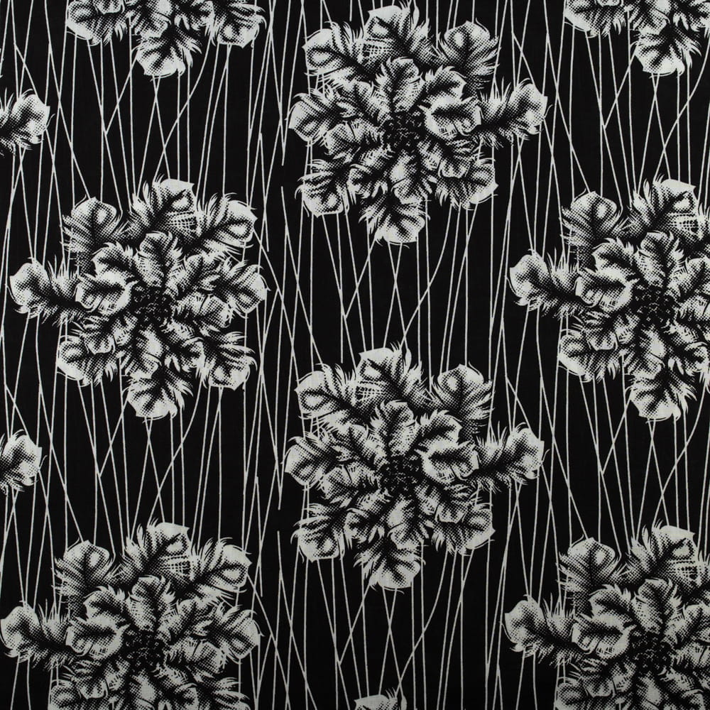 Tkanina Wiskoza – wzór kwiaty, kolor czarny