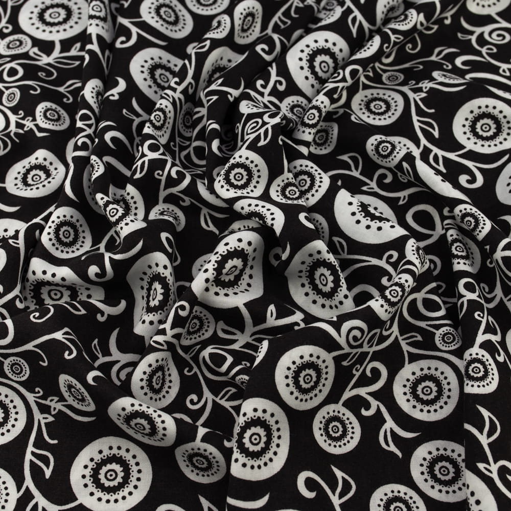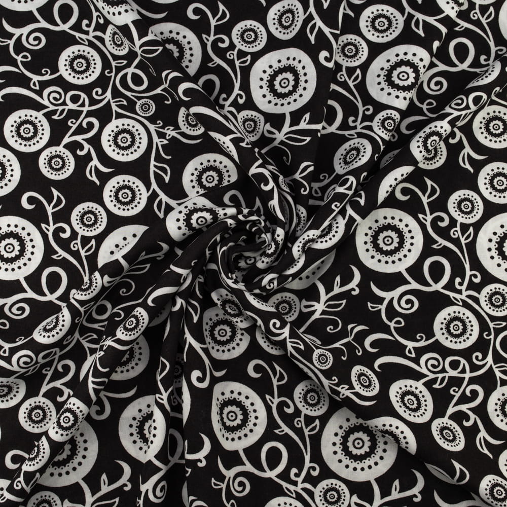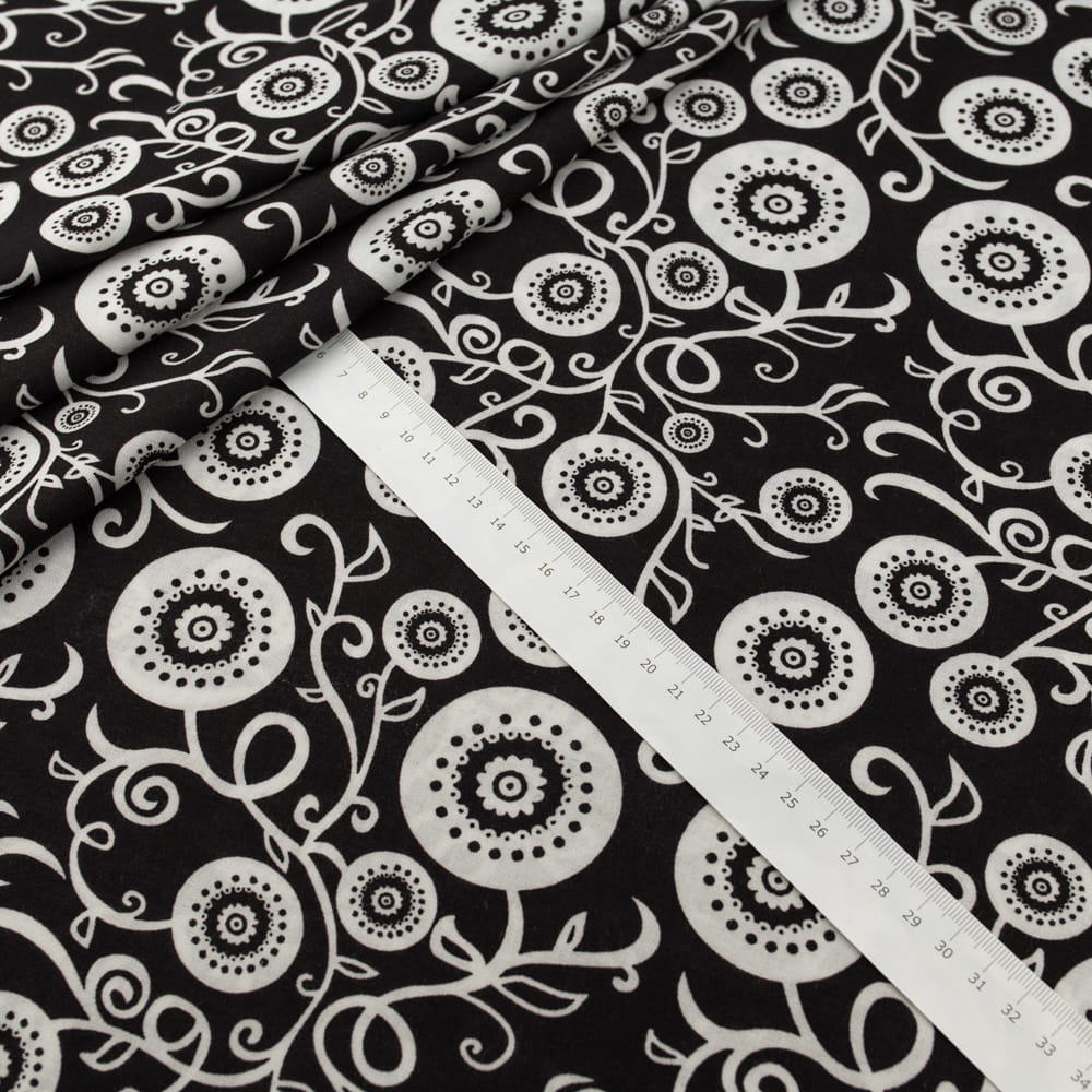 Tkanina Wiskoza – wzór kwiaty, kolor czarny