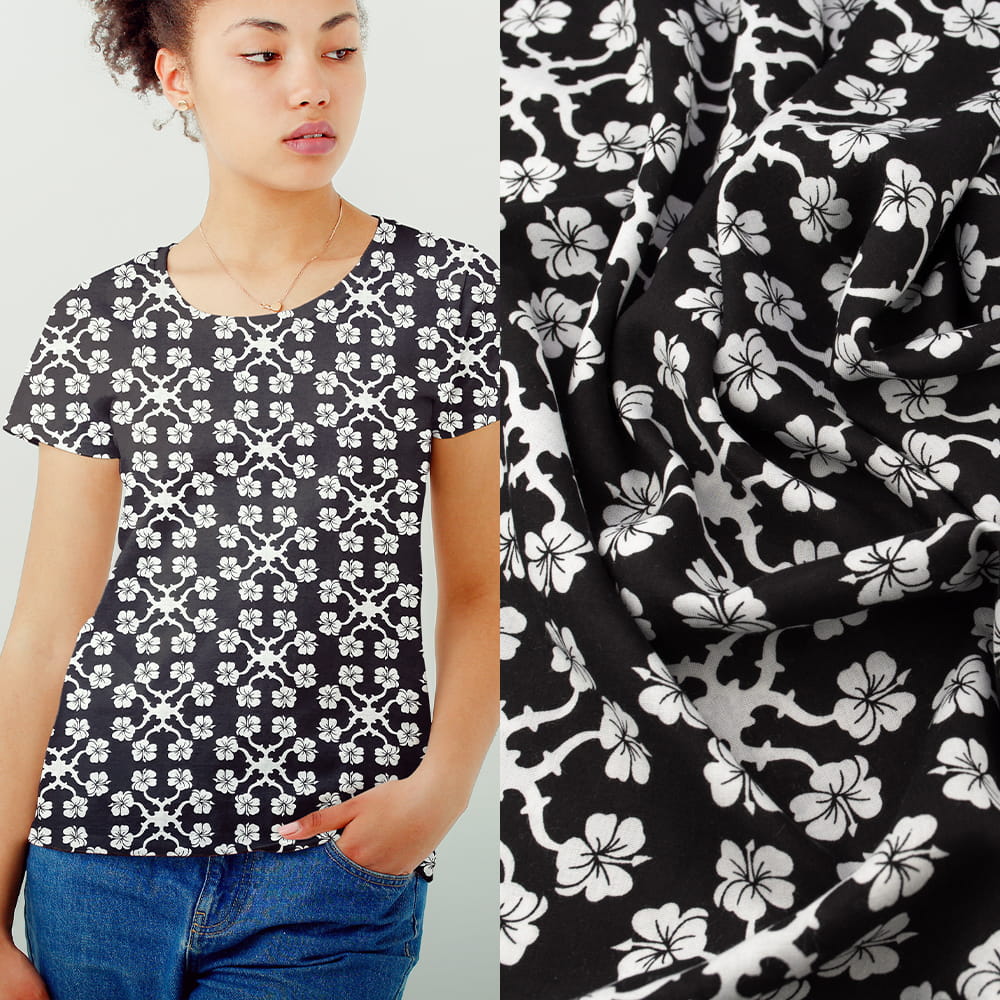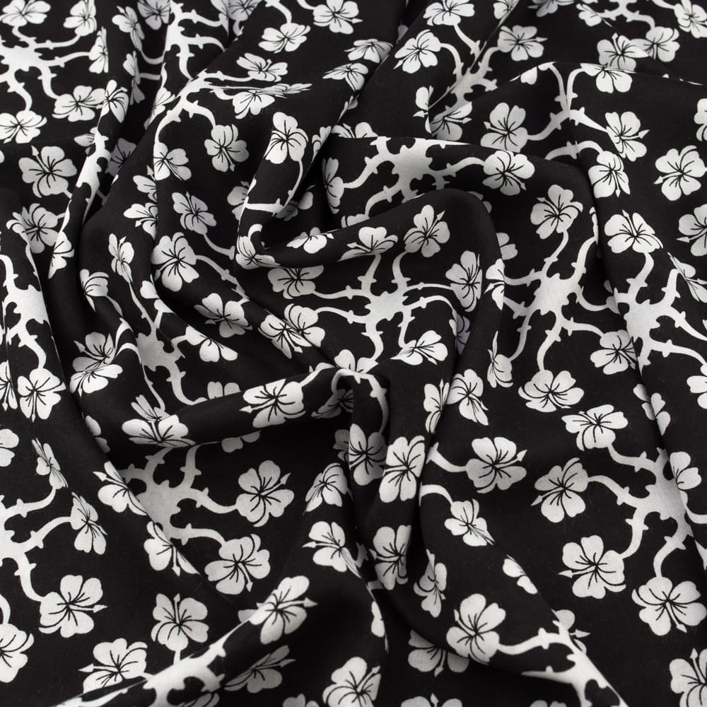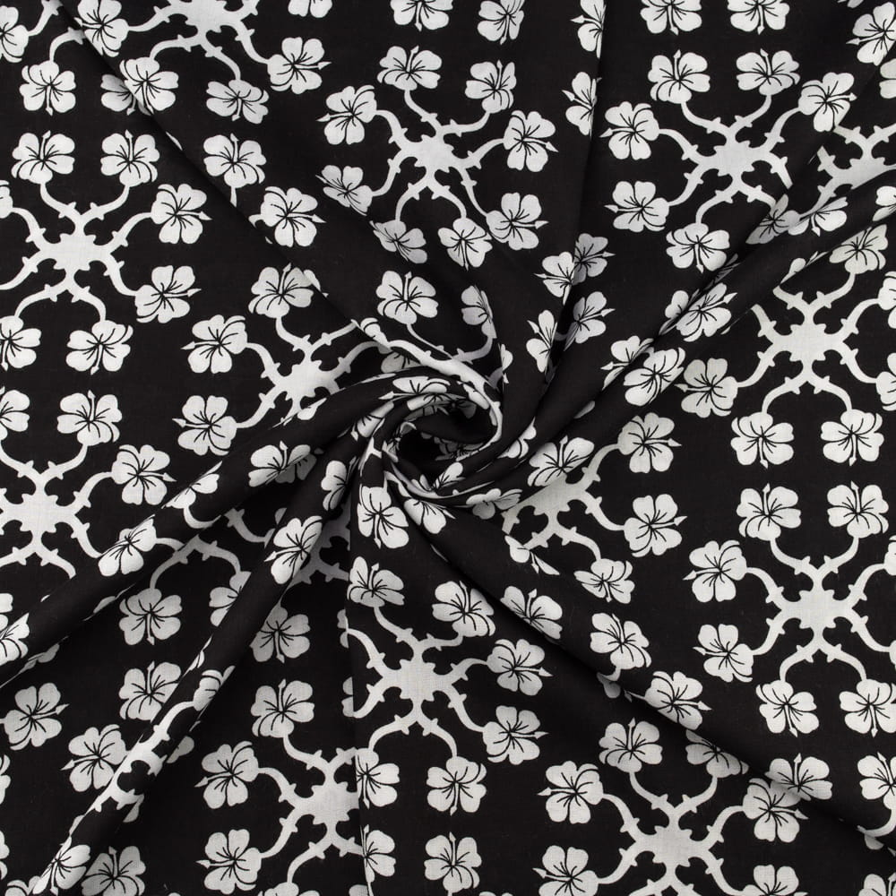 Tkanina Wiskoza – wzór kwiaty, kolor czarny