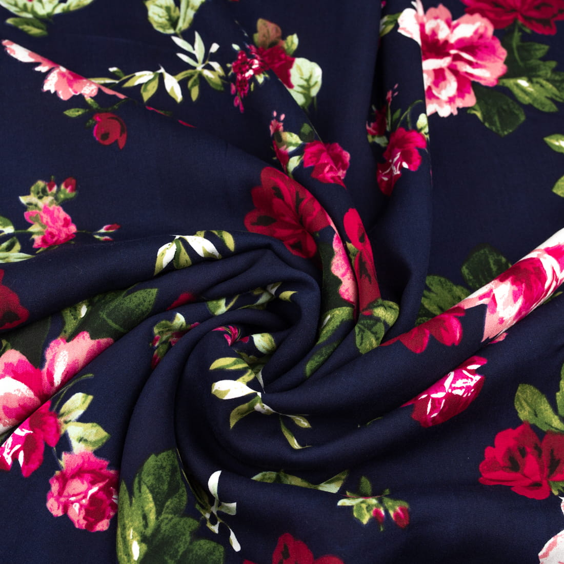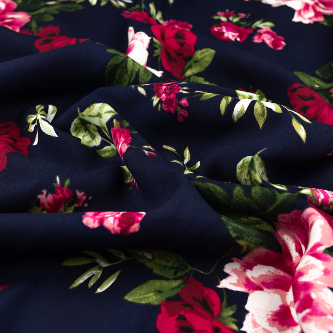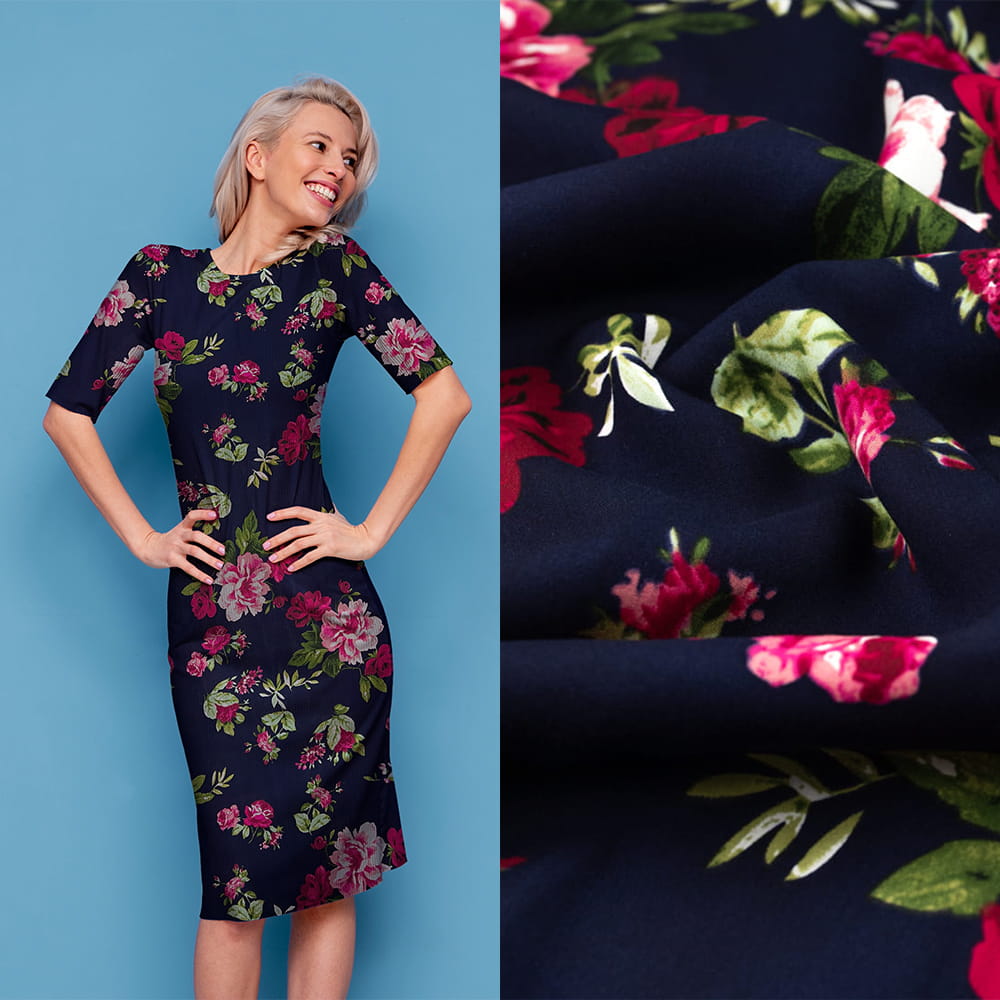 Tkanina Wiskoza – wzór kwiaty, kolor granatowy