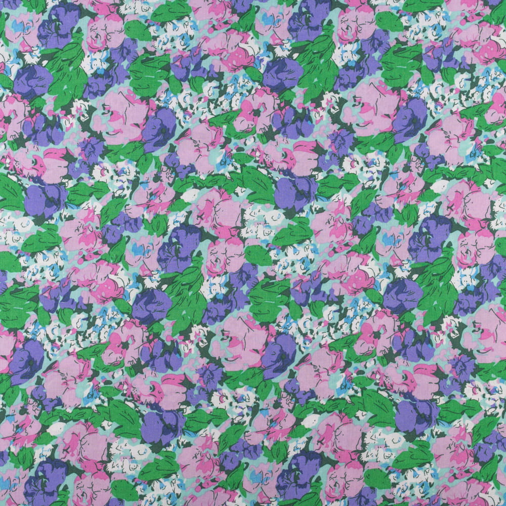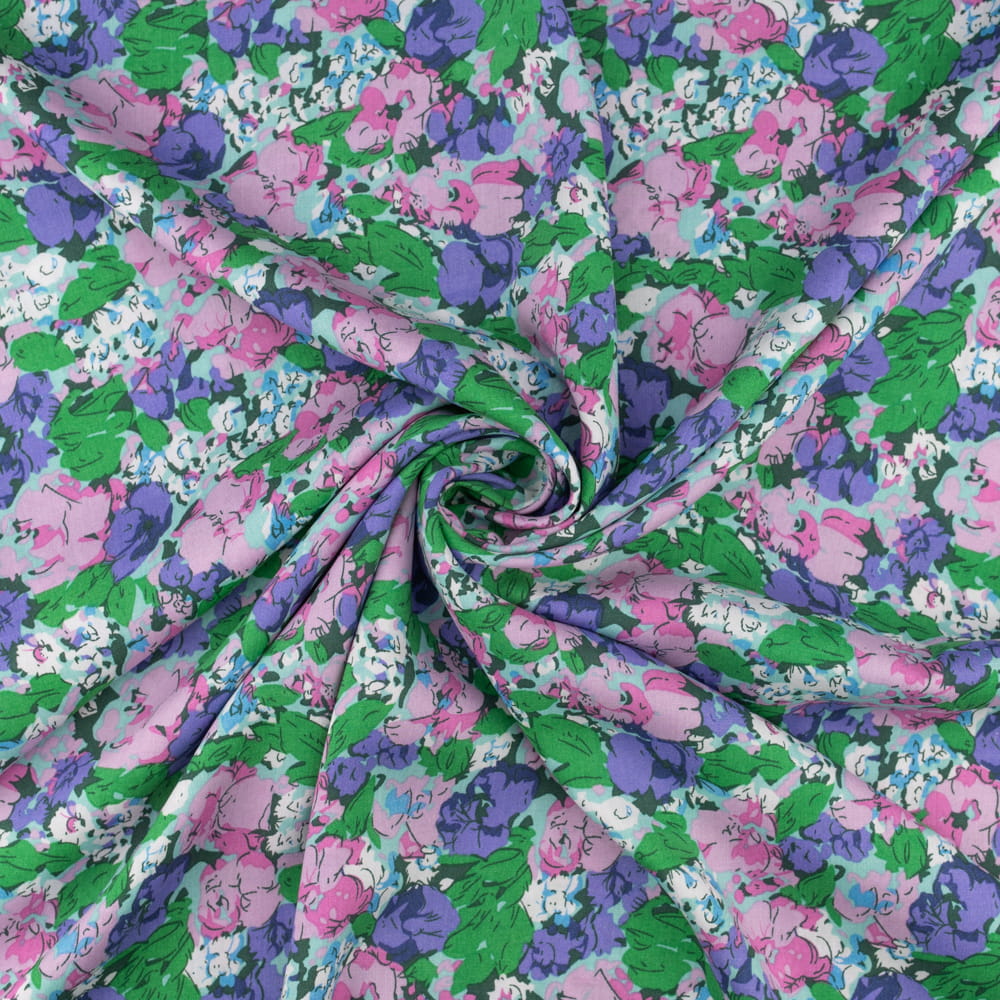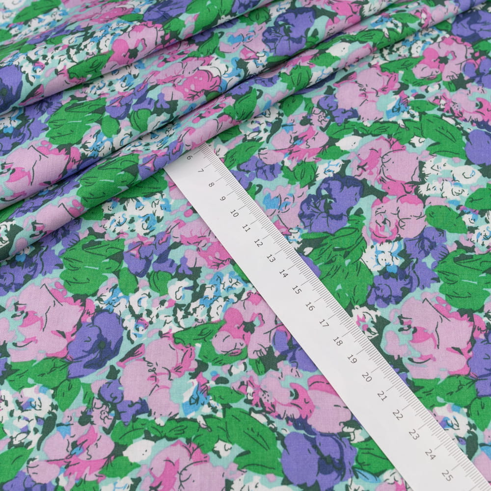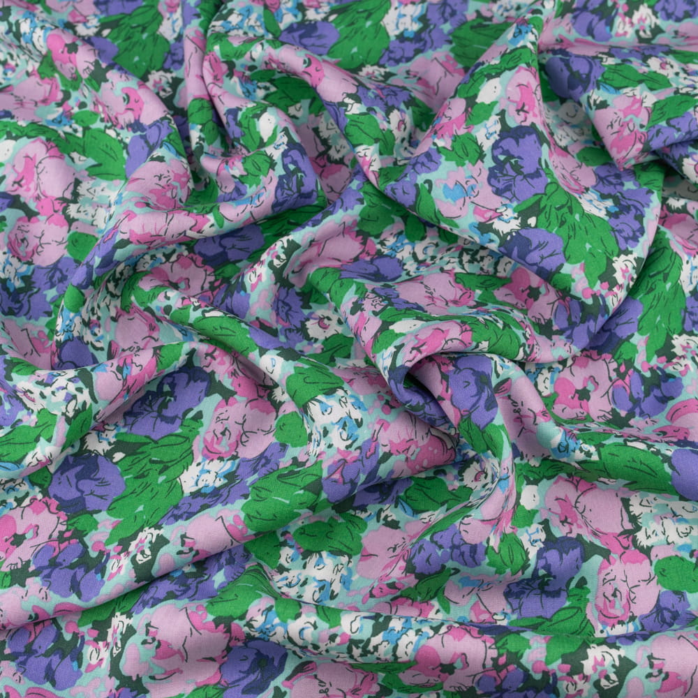 Tkanina Wiskoza – wzór kwiaty, kolor różowo-fioletowy