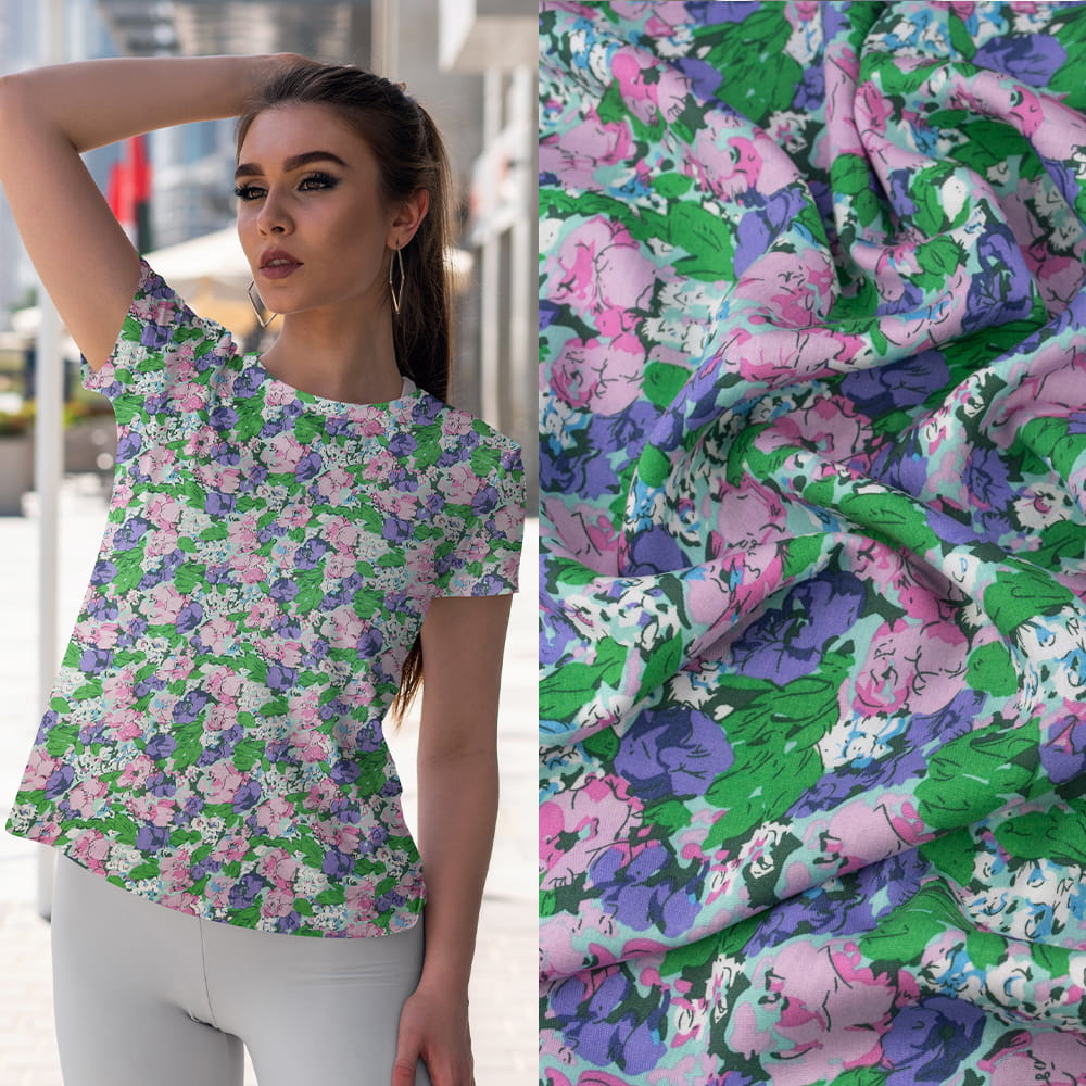 Romantyczna i zwiewna tkanina wiskozowa z subtelnym kwiatowym wzorem w odcieniach różu i fioletu. Lekka, miękka i przyjemna w dotyku – doskonale układa się na sylwetce, zapewniając komfort noszenia i kobiecy wygląd. Idealna na stylizacje, które łączą elegancję z delikatnością.