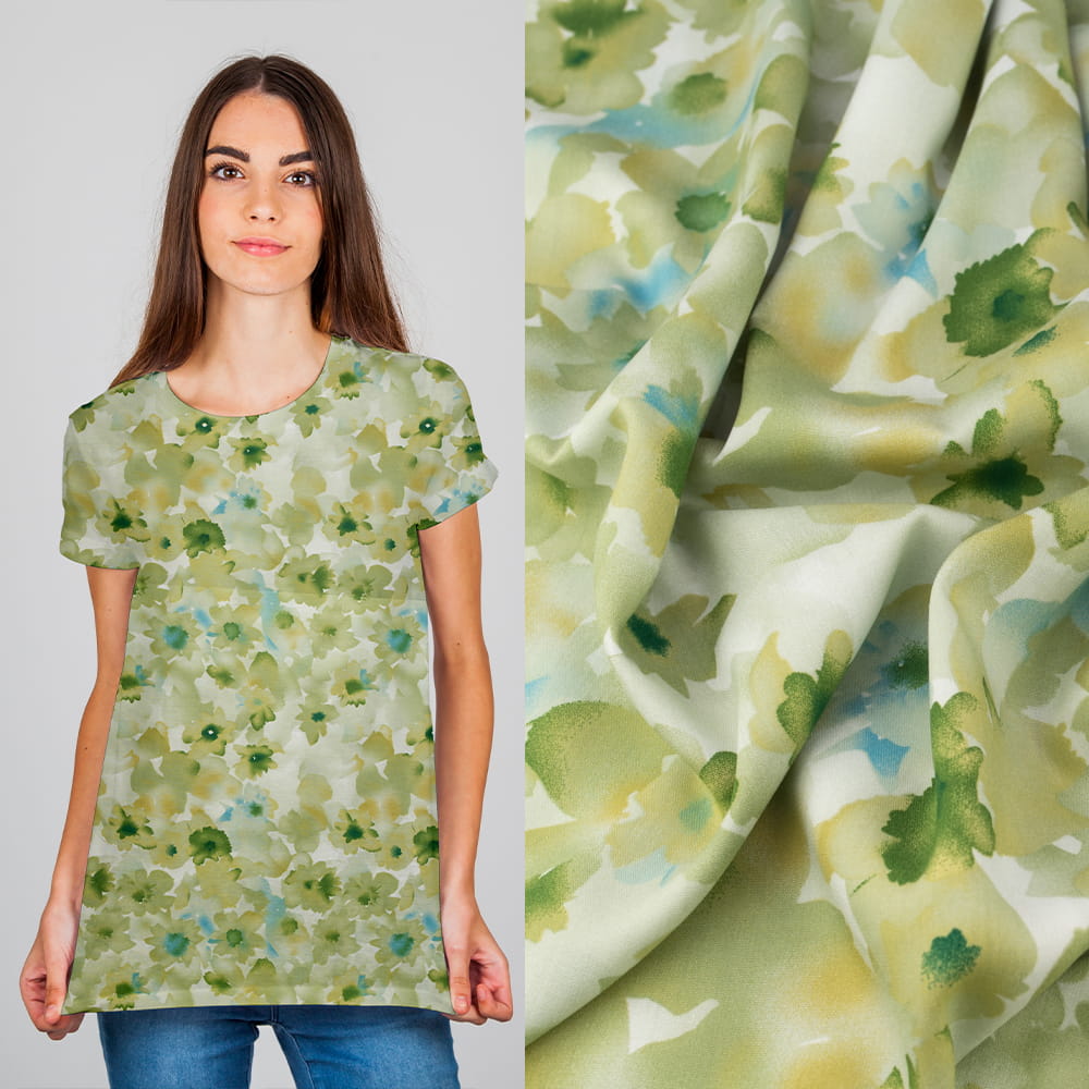 Tkanina Wiskoza – wzór kwiaty, kolor zielony