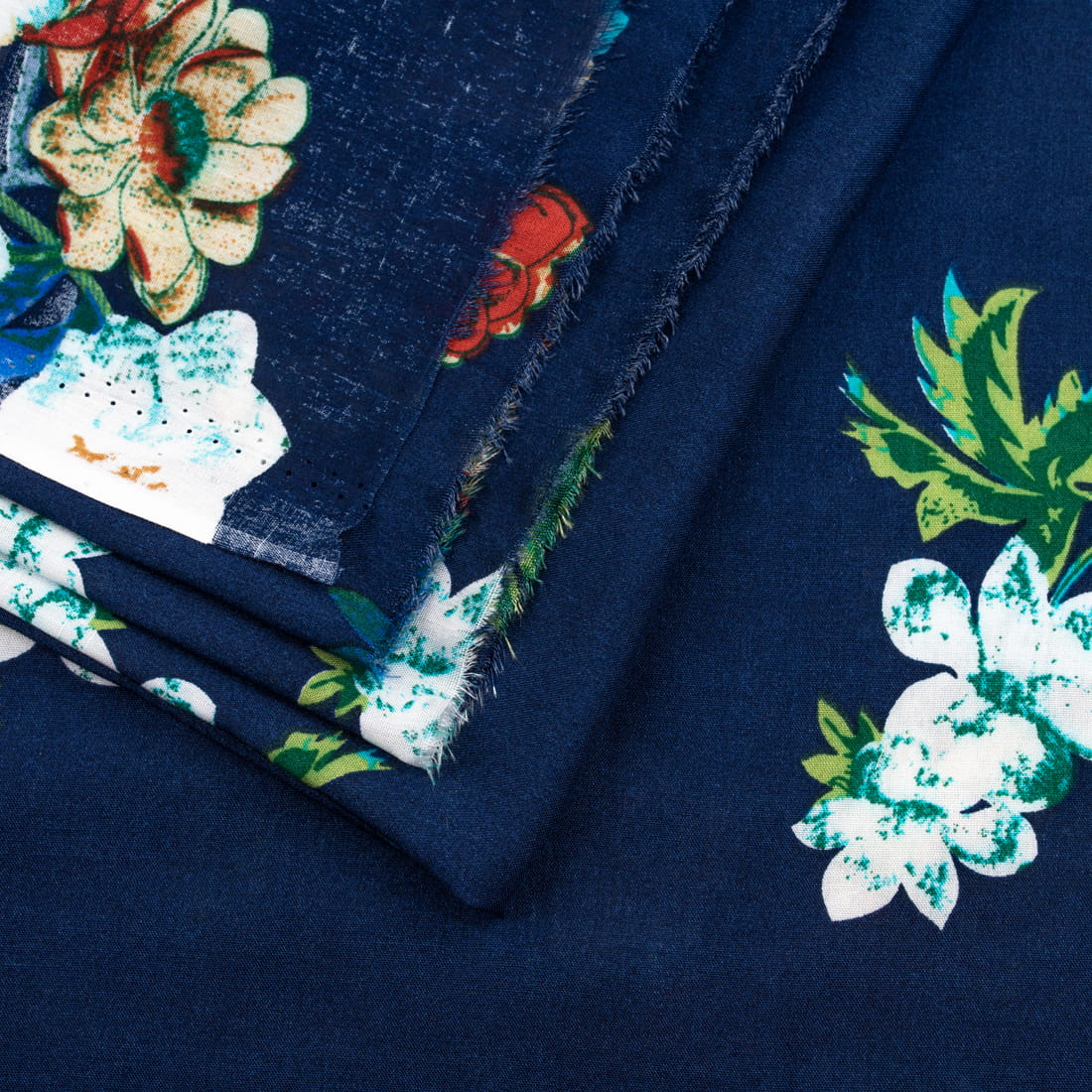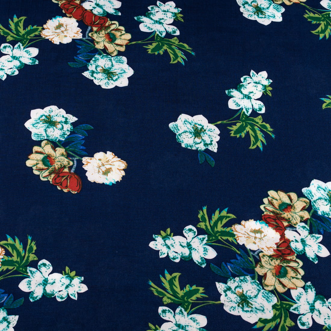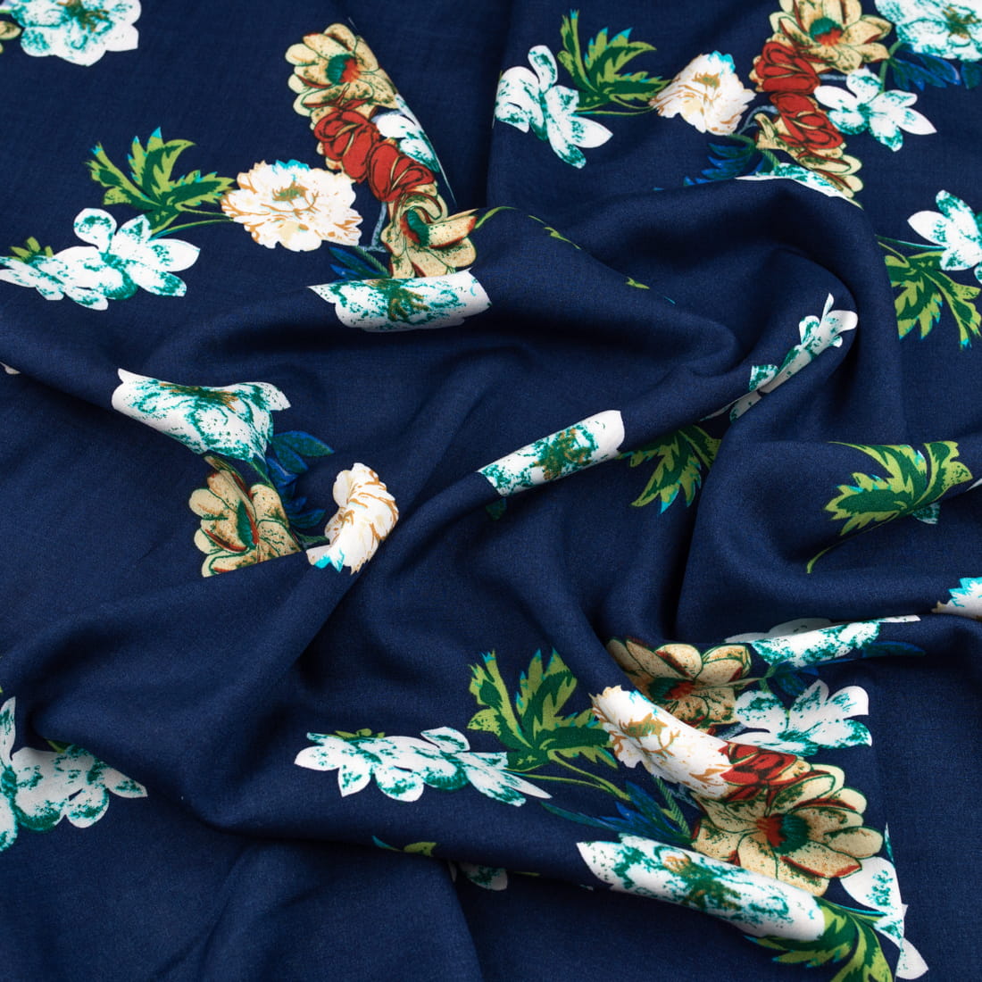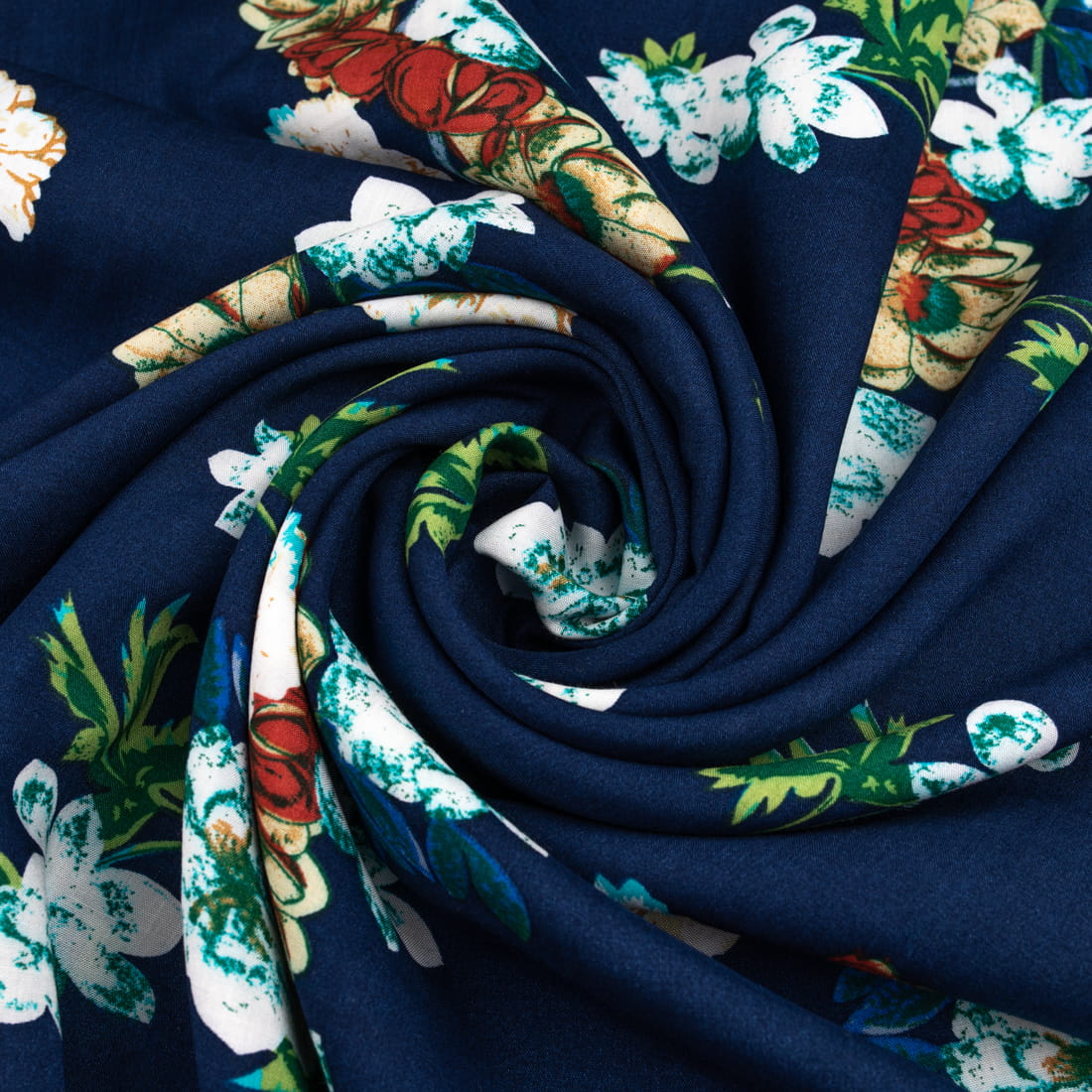 Tkanina Wiskoza – wzór kwiaty, tło granatowe