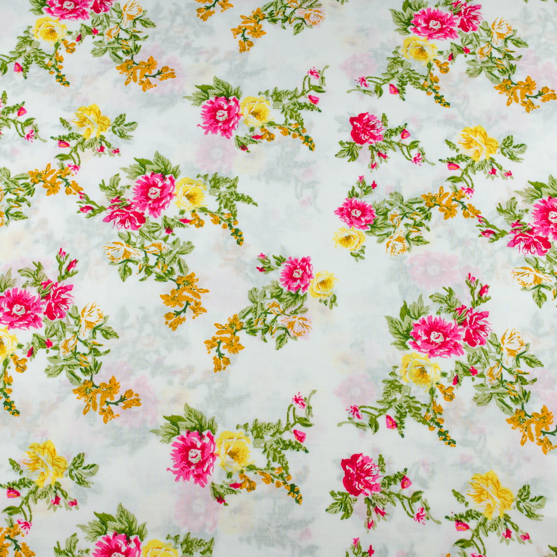Tkanina Wiskoza – wzór kwiaty, tło kremowe