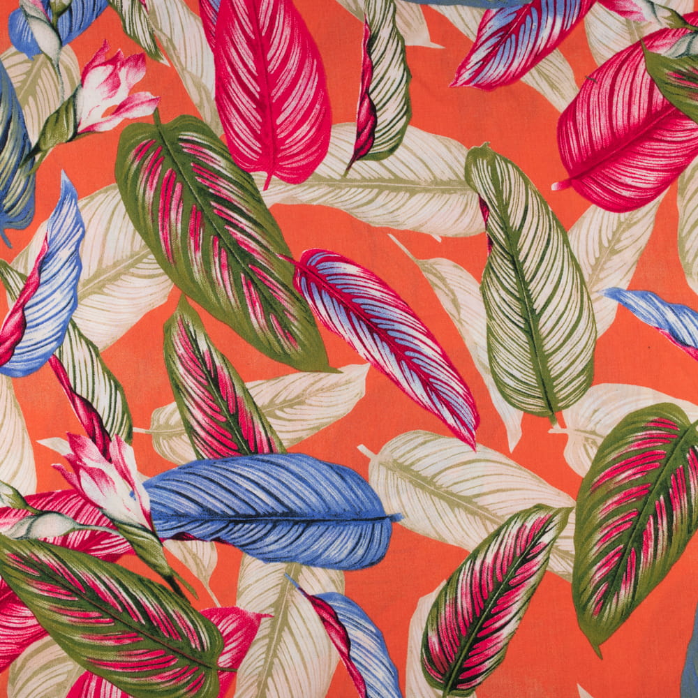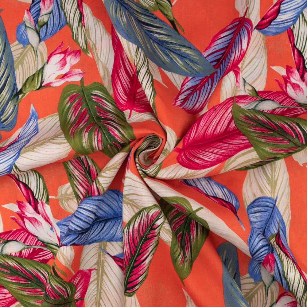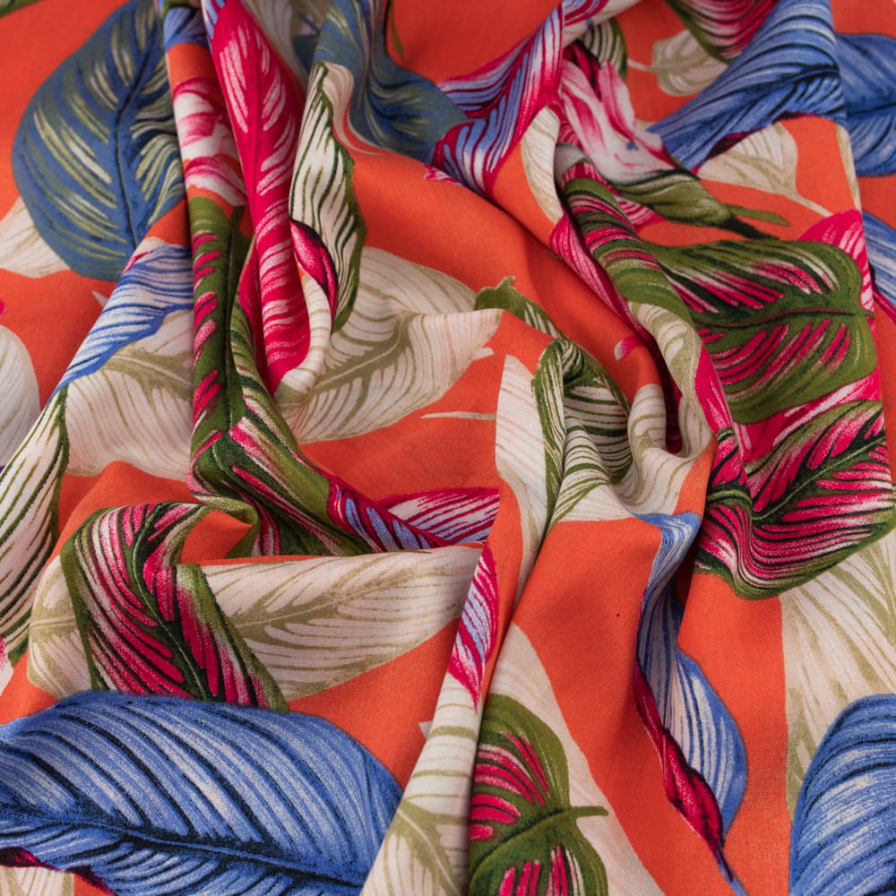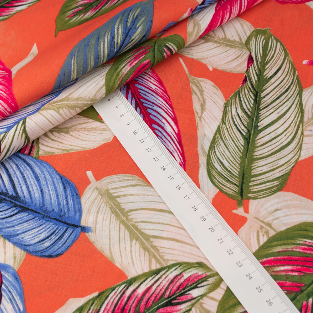 Tkanina Wiskoza – wzór liście, kolor pomarańczowy