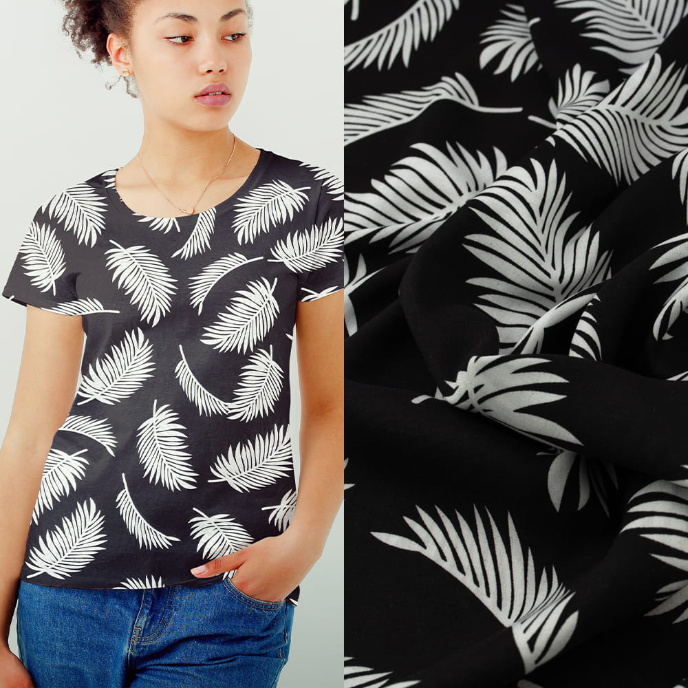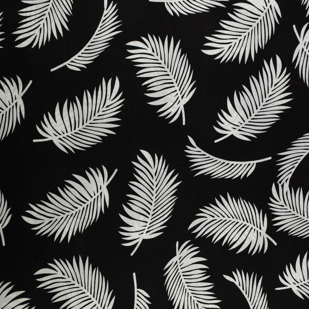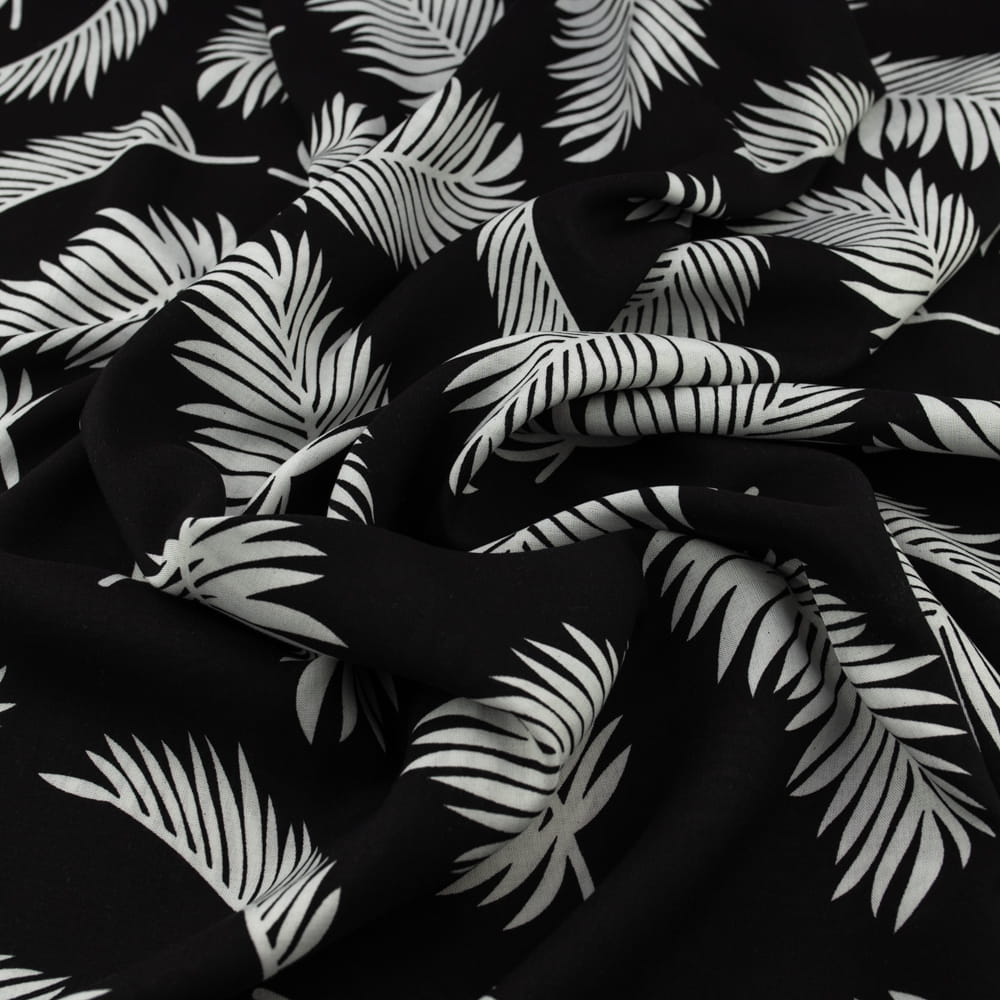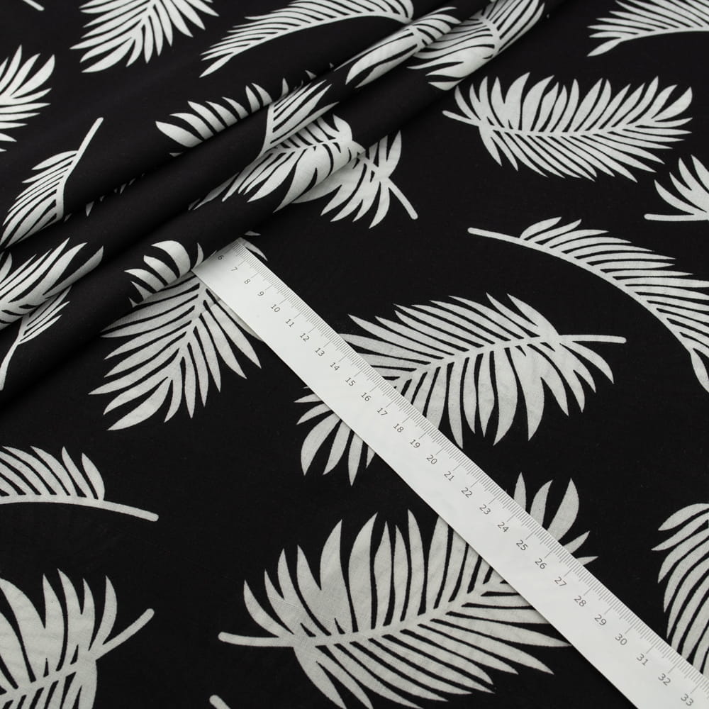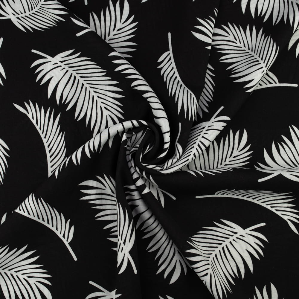 Tkanina Wiskoza – wzór liście palmy, kolor czarny
