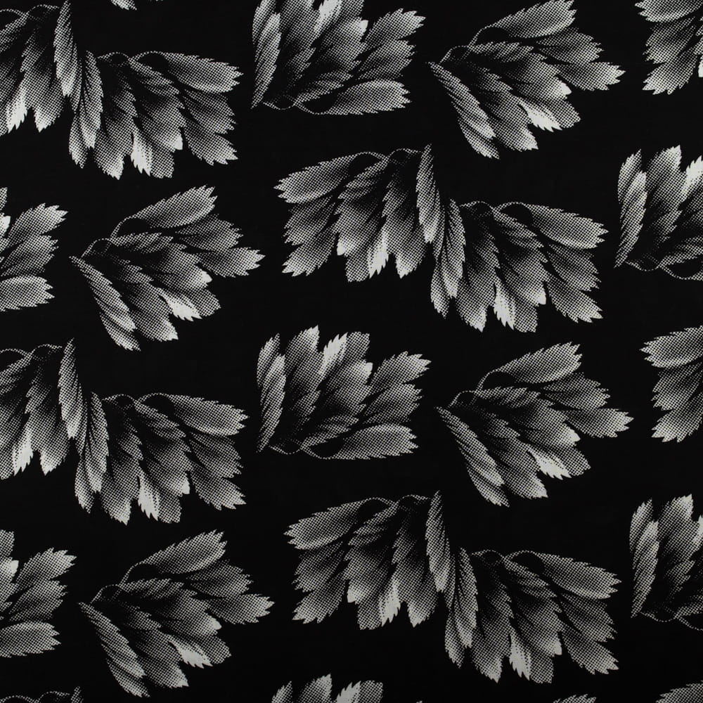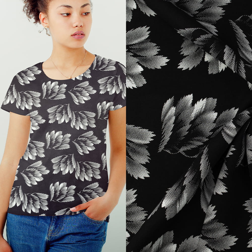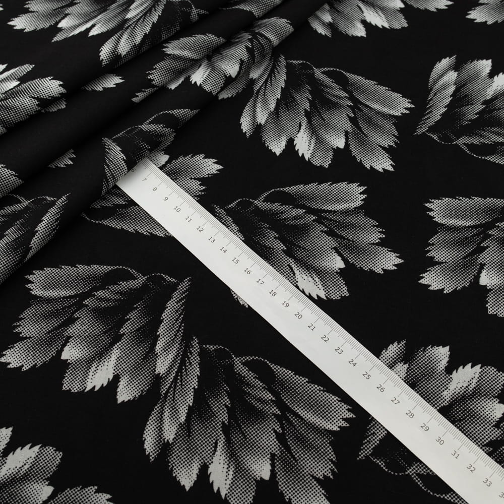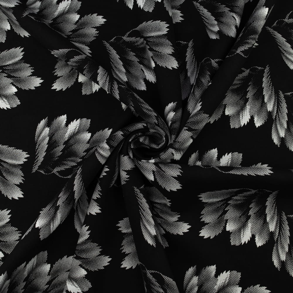 Tkanina Wiskoza – wzór listki, kolor czarny
