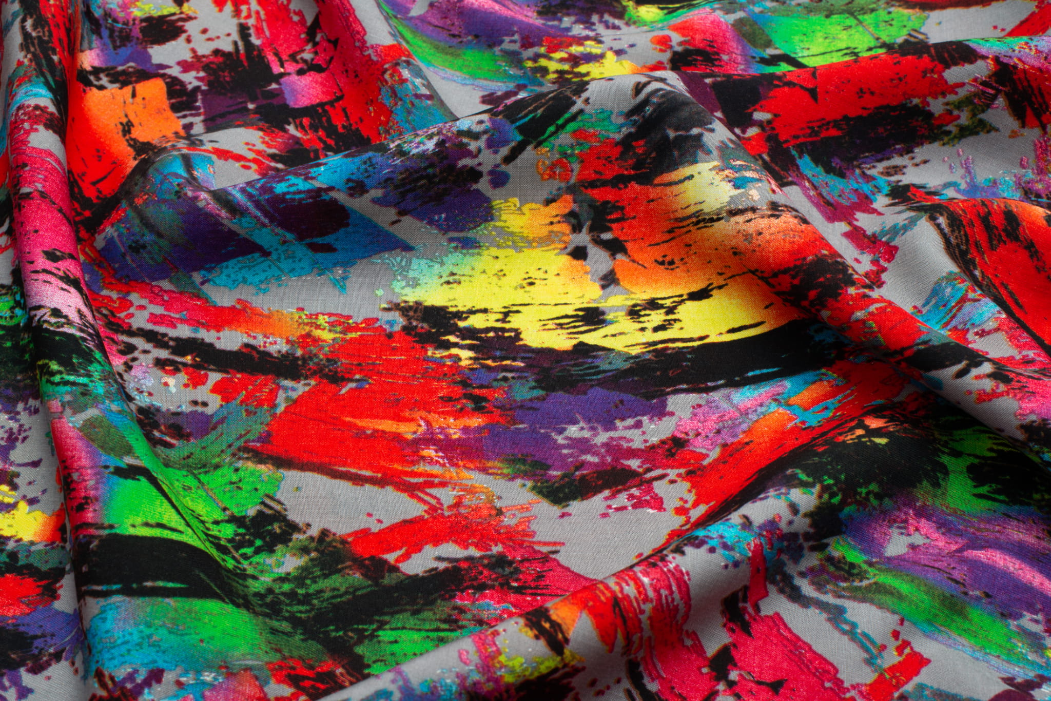Tkanina Wiskoza – wzór malowany, tło szare